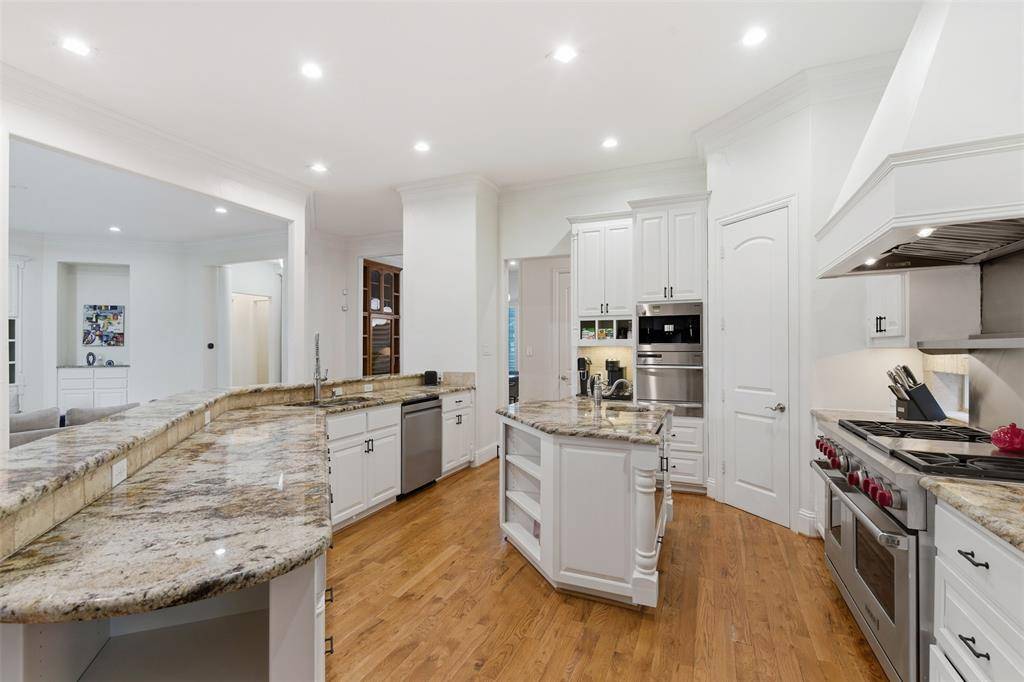 Set on a rare 0.406-acre lot in coveted Kessler Park, this 4,460 sq ft custom residence elevates everyday living with refined interiors and a true backyard oasis featuring a sparkling pool, elevated spa, lush mature landscaping, and multiple lounge and dining zones, all complemented by an expansive balcony capturing serene treetop views for seamless indoor-outdoor entertaining. A circular drive welcomes you to light-filled living and dining spaces with custom built-ins, decorative lighting, and two fireplaces, while the gourmet kitchen impresses with upgraded Sub-Zero appliances, a built-in gas range, a large island, breakfast bar, pantry, and a dedicated wine cellar—perfect for hosting. The main-level primary suite is a tranquil retreat with a cozy fireplace, dual sinks, a spa-inspired bath, and a generous walk-in closet; three additional bedrooms offer excellent scale for guests or family, and a dedicated office with cabinetry plus a spacious media room and an upstairs second living area provide flexible zones for work, study, and play. Notable upgrades include enhanced lighting, flooring, landscaping, and a brand-new roof, giving peace of mind, along with smart home capability and upgraded garage features. The garage is split between an attached two-car garage and a separate single-car garage, with additional oversized parking available on the circular driveway. Minutes to Bishop Arts, Stevens Park Golf Course, Trinity Groves, the Design District, and Downtown, this move-in-ready home blends sophistication, convenience, and resort-style living in one of Dallas's most desirable neighborhoods.