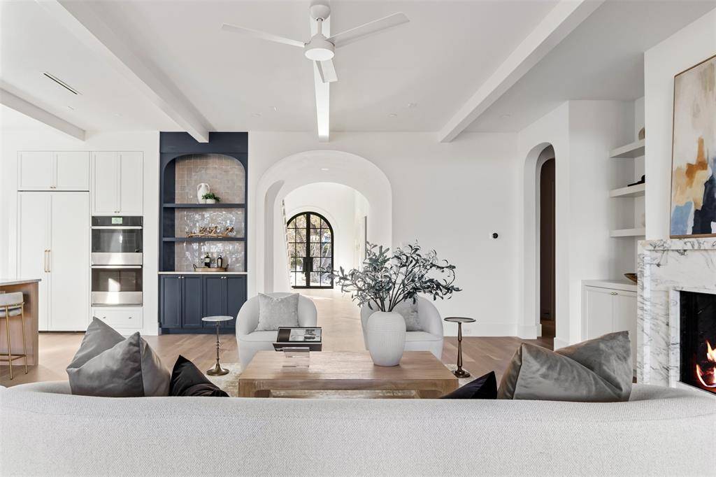 Step inside to sunlit interiors with expansive living areas and carefully curated finishes. The open-concept design flows seamlessly from living and dining areas to a chef-inspired kitchen featuring custom cabinetry, premium appliances, and a large center island—creating an ideal space for entertaining or family gatherings.