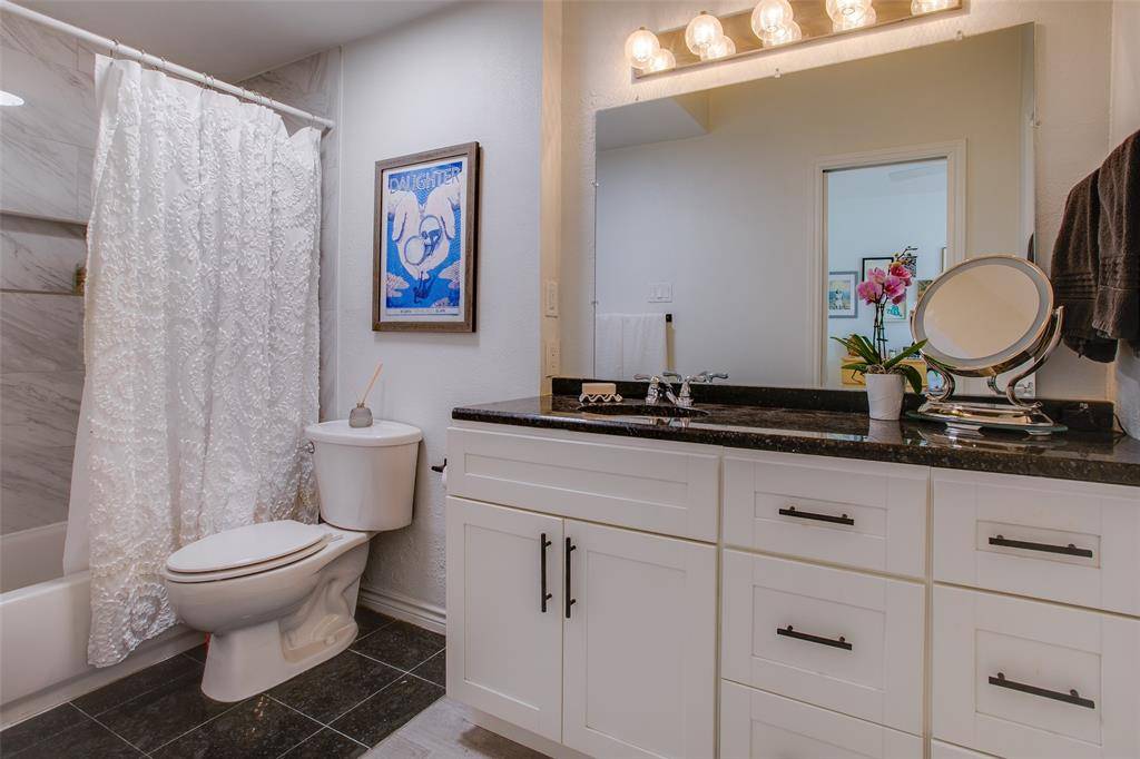 Sought after first floor 2-2 in the Bryan Place condos. Fall in love with the recently renovated kitchen featuring custom cabinets, quartz counters, and a timeless subway tile backsplash. The living and dining areas are highlighted by a wood burning granite fireplace, high tray ceilings, 2 private patios for outdoor enjoyment and LVP flooring leads you throughout the home. The bedrooms are split in layout, each with access to one of the patios. The primary has a large ensuite bath featuring granite counters, large vanity, tub-shower combo and an oversized walk-in closet. The guest bedroom also has an expanded walk-in closet and shares the renovated hall bath with granite counters. Additional highlights to this beautiful condo include tons of natural light, covered-assigned parking and access to the Bryan Place Community Pool, all blocks to downtown Dallas and the Arts District.