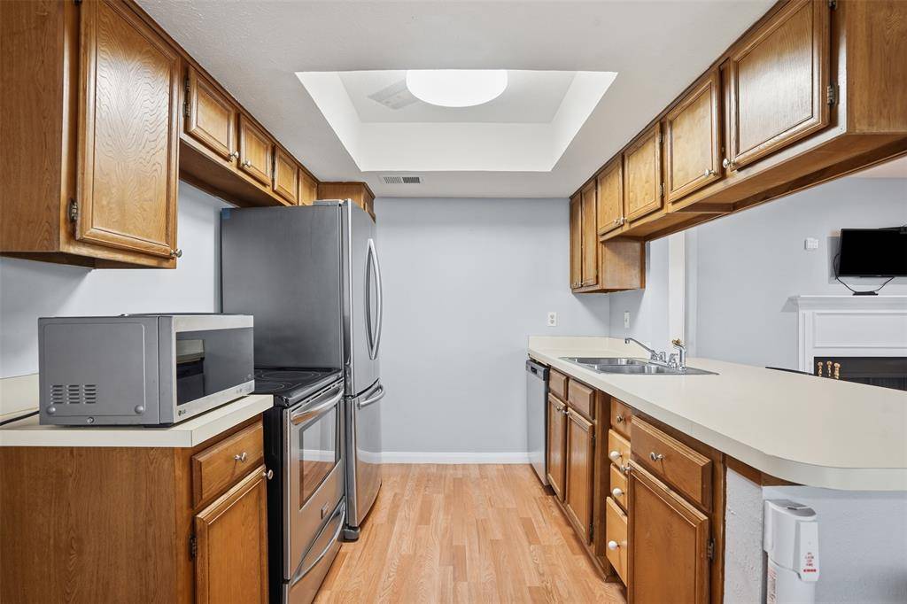Come tour a charming first-floor condo in vibrant north Oak Cliff. This one-bedroom, one-bath condominium with a versatile bonus room offers the perfect blend of comfort, functionality, and low-maintenance living. The living room features a cozy fireplace and a direct exit to a private patio. The dining space is filled with natural light and offers peaceful views of the open landscape. The bonus room provides incredible flexibility and can be customized to suit any lifestyle — whether you need a home office, hobby room, fitness area, creative studio, or additional storage space. The primary bedroom faces the front of the unit and offers generous closet space, as does the rest of the condo, providing ample storage throughout. The bathroom is thoughtfully designed with dual sinks, plus a separate room for the toilet and shower, adding both comfort and privacy. This condo also includes space for a full-size, side-by-side washer and dryer, a highly desirable convenience for condo living. The kitchen features an open layout that flows seamlessly into both the dining and living areas, making it ideal for entertaining and everyday functionality. Located in a lively and rapidly flourishing area of Dallas, this home offers close proximity to downtown Dallas, Trinity Groves, Bishop Arts District, and major highways- making commuting and city exploration effortless! Residents can easily enjoy nearby dining, entertainment, and neighborhood attractions. Outdoor enthusiasts will love being close to the trails of the Dallas Loop trail system- great for nature walks and enjoying urban wildlife. Community amenities include a refreshing community pool, ideal for relaxing and socializing during warm Texas days. The unit is also conveniently located just a short distance from the community mailboxes and pool. This home delivers comfort, flexibility, and location — all wrapped into one well-loved condo ready for its next chapter. Contact your favorite Realtor today and schedule a tour!