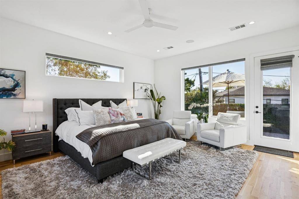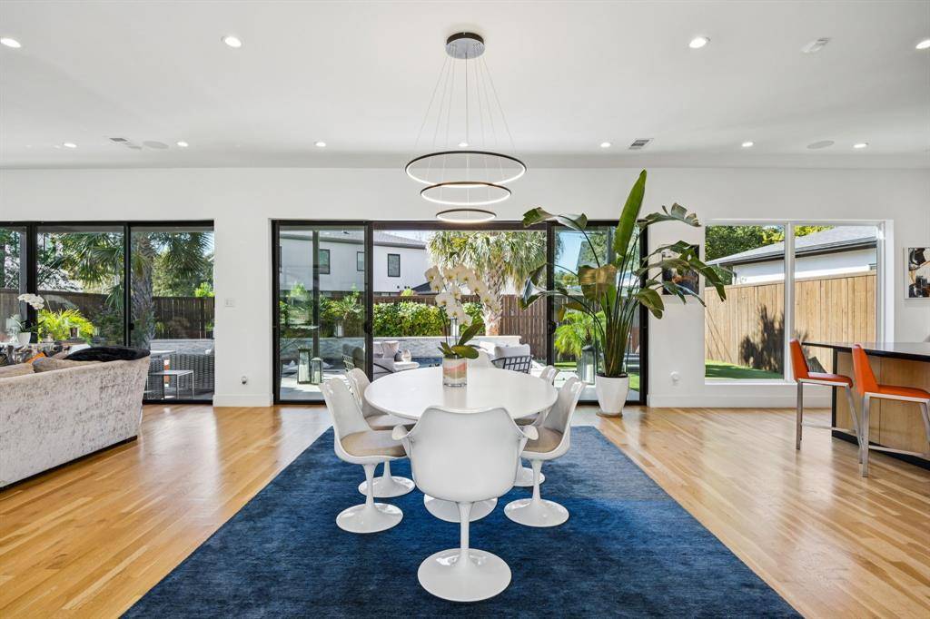 Through multiple sliding glass doors, the indoor spaces flow effortlessly to the backyard, a true haven of luxury. A resort-style pool anchors expansive outdoor living and entertaining areas, creating a private sanctuary perfect for intimate evenings or grand gatherings.