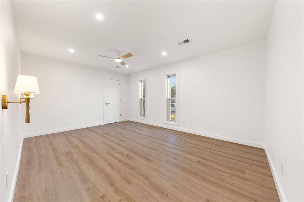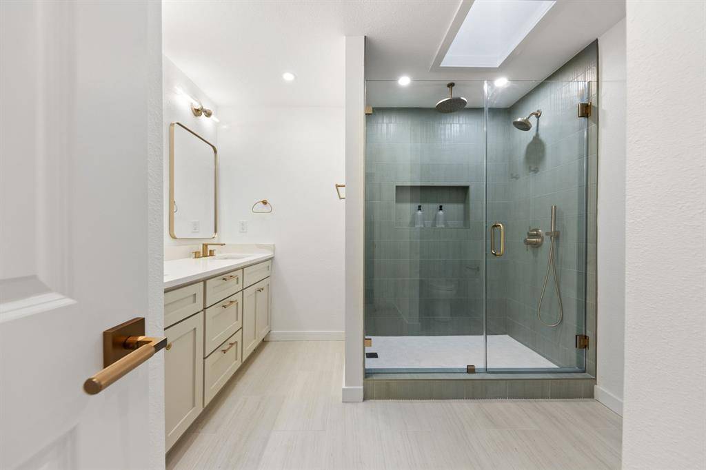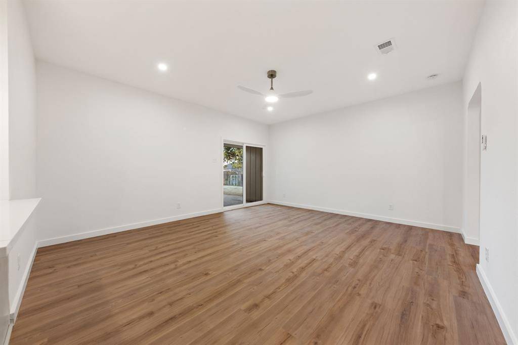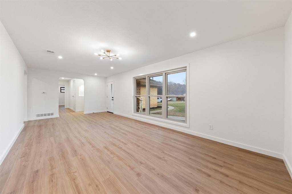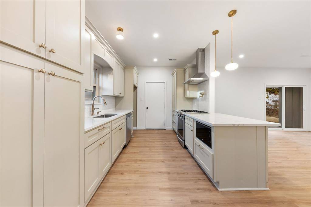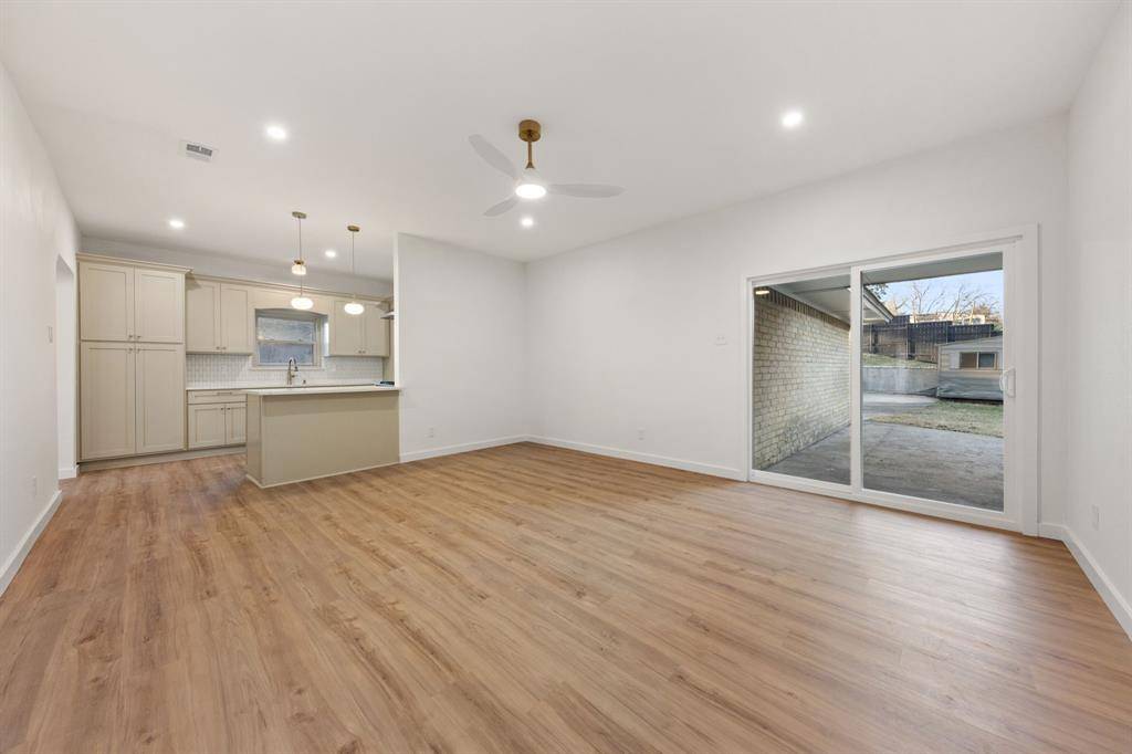 Stunningly reimagined home in the heart of Druid Hills in Oak Cliff. A warm and inviting presence from the moment you walk in, this thoughtfully redesigned home blends timeless charm with modern, curated finishes throughout. An inviting open floor plan showcases spacious living spaces flowing seamlessly throughout the home, featuring airy 9 foot ceilings. The refreshed kitchen delivers custom cabinetry paired with stylish fixtures, quartz countertops and stainless steel appliances. The primary suite is privately tucked away, offering generous proportions, a large walk-in closet, decorative lighting, and an ensuite bath with double vanities and a striking stand-up shower with upgraded Delta fixtures. Three additional bedrooms provide flexible options for guests, family, or the perfect home office. Situated on a .28-acre lot, the exterior boasts a generous backyard ideal for entertaining, plus a long driveway leading to a 2-car garage. Located on a cul-de-sac and just minutes from Bishop Arts, Kiest Park, Oak Cliff Nature Preserve, revived Wynnewood Village shops, Downtown Dallas, just to name a few. This home delivers convenience, style, and comfort in one exceptional package.