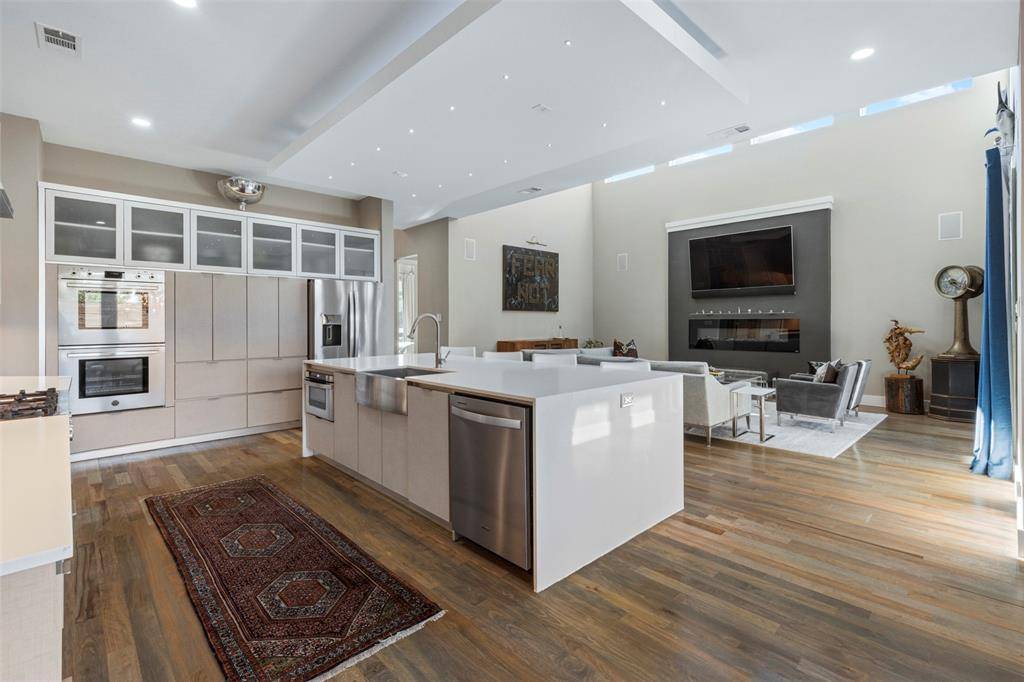 The open-concept main living area centers around a chef's kitchen, and high end appliances with an oversized island, sleek finishes, and a seamless connection to the dining and living spaces—perfect for entertaining and everyday living.