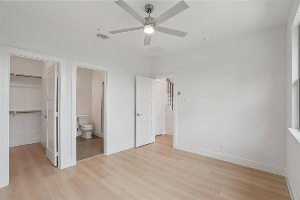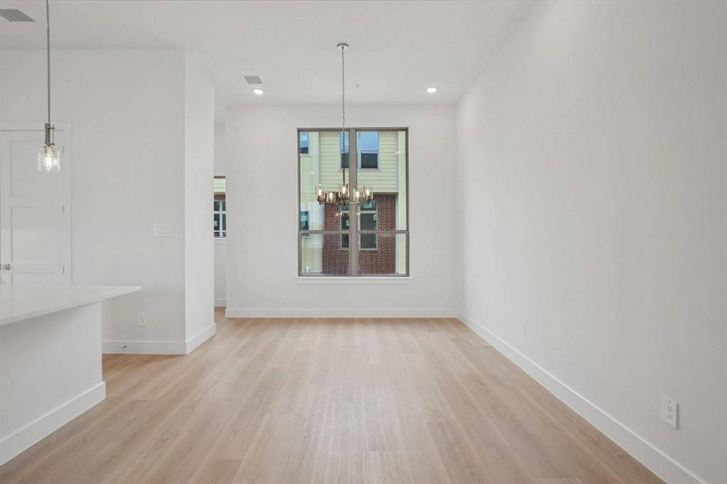Newly completed, designer-finished townhome offering clean lines, modern luxury, and effortless style. Premium luxury vinyl plank flooring runs throughout, paired with sleek designer tile in the bathrooms and utility areas for a polished, contemporary look. The open-concept main living level impresses with 11-foot ceilings, oversized windows allowing an abundance of natural lighting. Stunning kitchen is anchored by a 12-foot quartz island, soft-close custom cabinetry, and modern hardware. The living area is elevated by a 72-inch horizontal fireplace, delivering both style and warmth. Goodland Townhomes is an exclusive, contemporary community of just 25 three-story luxury residences, thoughtfully designed for modern urban living. Prime location, just minutes from downtown Farmers Branch, this evolving area offers walkable access to restaurants, Cox Farms Market, and the DART Train system, parks, jogging & bike trails, and so much more! Photos are representative; finishes may vary by unit.