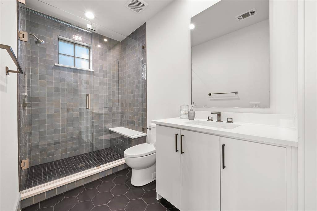 Lakewood custom-built contemporary by Montgomery Homes that elegantly balances everyday living with high-end design at every turn. With 4,882 SF between the main house and the full guest house, this property is packed with living, entertaining, working, and relaxing spaces. The open concept living room is the perfect example of how elegance meets functionality with a modern kitchen boasting clean lines, custom rift cut white oak cabinetry, Taj Mahal quartzite center island, Gaggenau induction cooktop, built-in Thermador appliances, and a pantry and prep kitchen with second sink, double ovens, ice maker, and refrigeration drawers. The light from the wall of glass and double-height ceiling washes over the warm wood accents and gas log fireplace with stone surround. The downstairs master retreat boasts marble and honed granite surfaces, Victoria + Albert tub, steam shower, dressing room, and ensuite office. The main floor is rounded out by the elegant dining room, bespoke powder bath, laundry room, and mud room with loads of storage. Upstairs you'll find a second living room and three bedrooms with ensuite baths. The outdoor oasis begins with the sparkling pool that sits next to the covered living and dining patio with fireplace and ends with the built-in grill station.