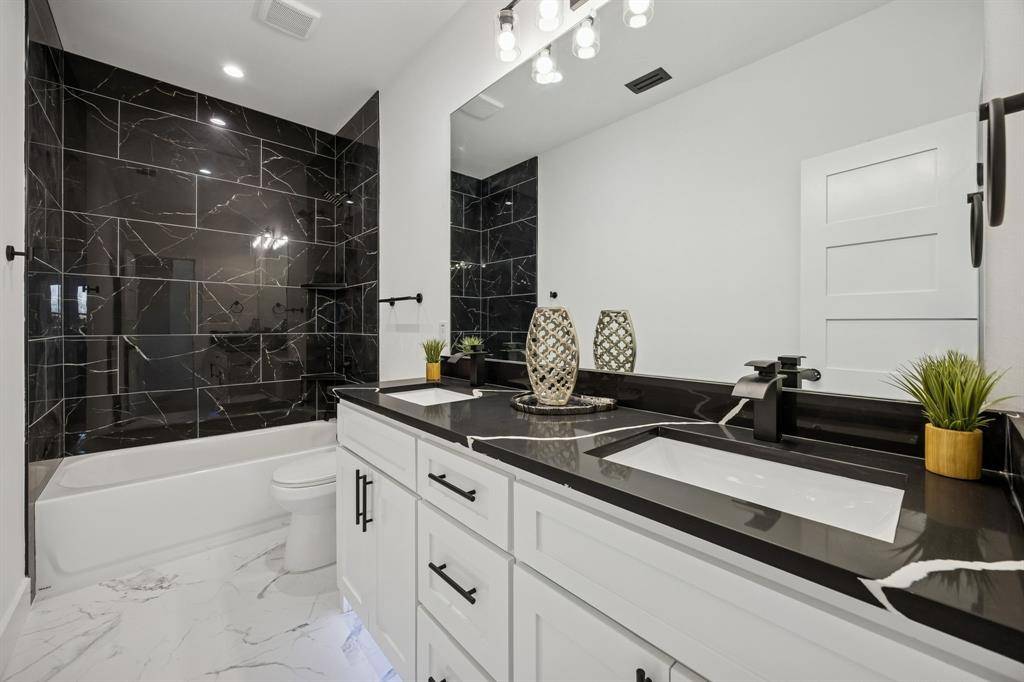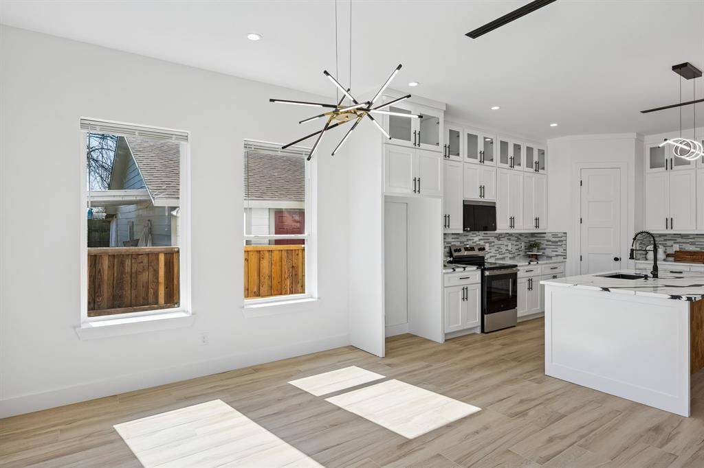 Stunning new construction within 15mins of Downtown Dallas! This gorgeous modern features a spacious open-concept main level with sleek kitchen, living, & dining spaces that combine to create an entertainer's dream loaded with designer touches! Main level also features 4th bed or office space with full bath. Gorgeous kitchen featuring quartz counters, island with seating, and stainless appliances. Custom fixtures & LED lighting throughout. Head up the handcrafted oak tread staircase to find the spacious primary suite with balcony, 2 large bedrooms, and 1 additional full bath.