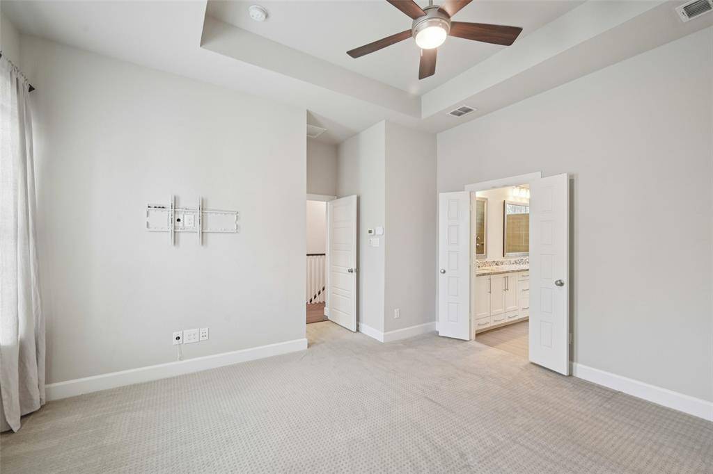 Primary suite features separate closets, a rainforest shower head, and close proximity to the laundry room, so you don't have to worry about going down multiple floors.