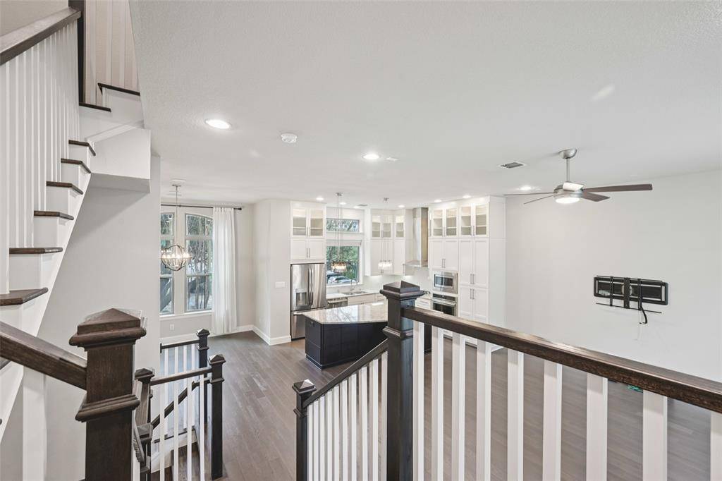 All three bedrooms offer private en-suite baths, plus a convenient powder bath on the main level. Hardwood floors, neutral tones, and designer lighting create a clean, modern aesthetic throughout.