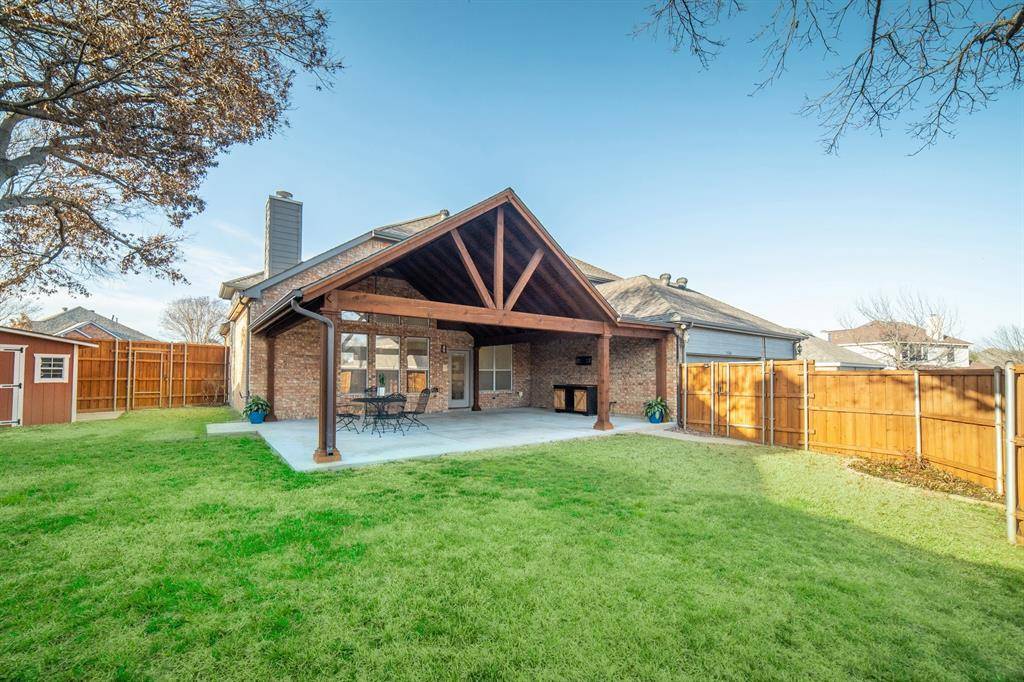 Step outside to your private backyard retreat showcasing a gorgeous 20x30 covered patio addition complete with ceiling fans—perfect for year-round outdoor entertaining and relaxing evenings.
