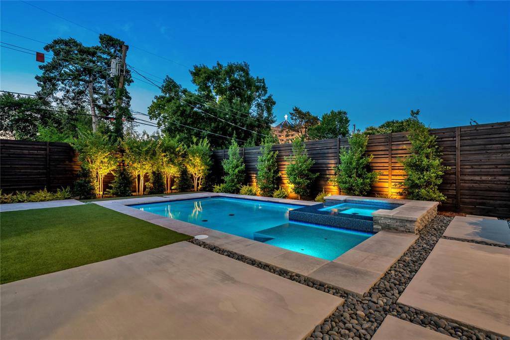 Elevated elegance in East Kessler. Nestled in the highly sought-after East Kessler community, this meticulously crafted new build by Kessler Hill Custom Homes delivers luxury, architectural precision, and serenity on one of the neighborhood's most exclusive hillside streets. Built on an elevated lot with pier-and-beam construction, reinforced concrete retaining walls, and professionally designed landscaping, the home combines enduring strength with dramatic curb appeal.Inside, a soaring 20-foot-ceiling living room with white-oak floors and floor-to-ceiling windows sets a tone of light and sophistication. The gourmet kitchen features a massive quartzite island, commercial-grade range, and a custom butler's pantry ideal for entertaining. An elevator connects all levels, including a second-floor lounge with two ensuite bedrooms and a terrace showcasing iconic Dallas views. The top floor offers a flexible multi-purpose suite with a built-in bar — perfect for media, game, or guest use. The primary suite on the main level is a private retreat overlooking the pool and treetops, complete with a sitting area, spa-inspired bath with dual vanities, soaking tub, and custom walk-in closet. The outdoor living space is a showpiece — a lush, elevated courtyard with resort-style pool and mature landscaping that create both intimacy and grandeur. Just a short walk from Kidd Springs Park and minutes from Bishop Arts and Trinity Groves, this home blends the tranquility of hillside living with the energy of urban Dallas.Move-in ready with builder home warranty.