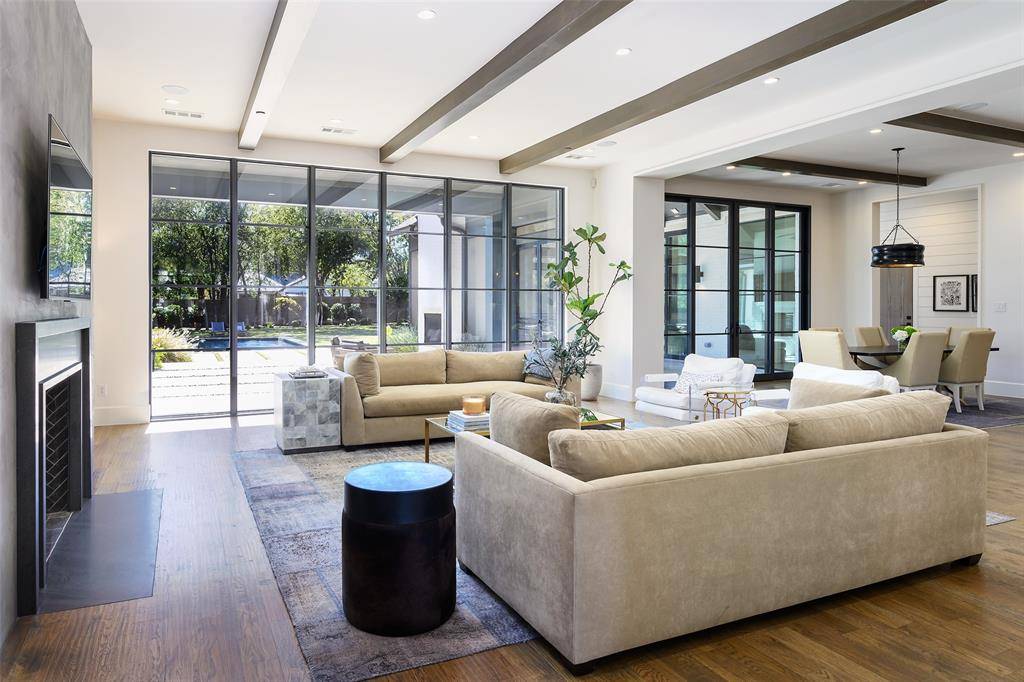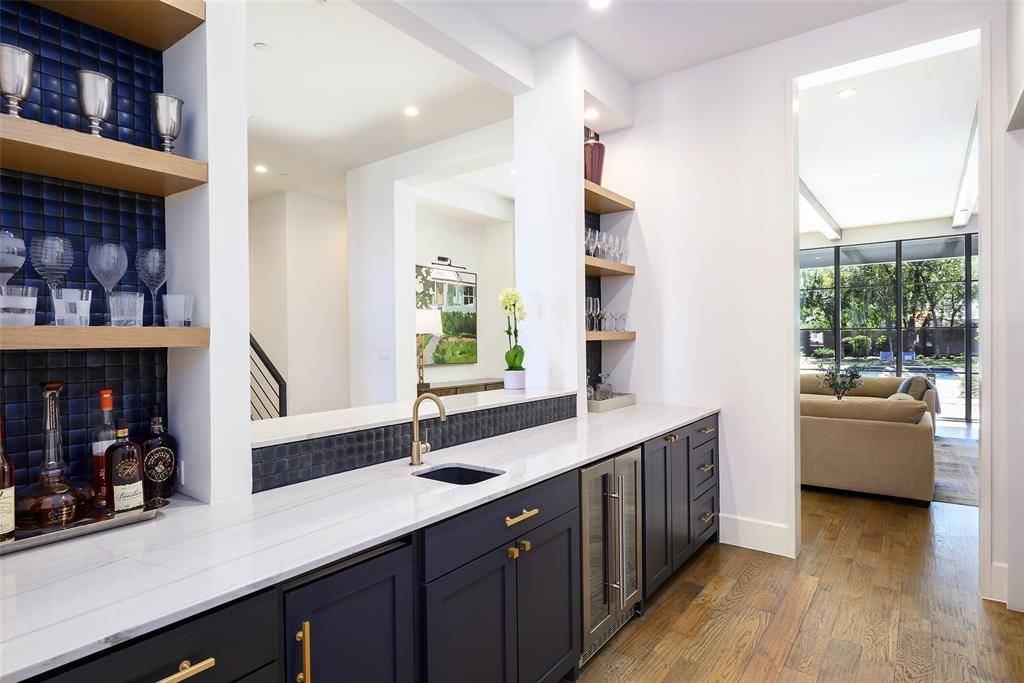 11546 W. Ricks Circle, Dallas, TX 75230 is a 7,158-square-foot custom, luxury estate built in 2017-18 by renowned builder Ellen Grasso, set on an exceptional .88-acre estate lot on coveted Ricks Circle in the prestigious Preston Royal neighborhood near Preston Hollow. This 5-bedroom, 5.2-bath transitional brick-and-stucco residence blends clean architectural lines with timeless design, offering refined modern living in one of North Dallas' most sought-after luxury neighborhoods, minutes from Dallas' premier private schools and within Dallas ISD. Eleven-foot ceilings and expansive floor-to-ceiling windows fill the home with natural light, while oversized sliding doors in two spacious living areas create seamless indoor-outdoor flow to a screened porch with a vaulted ceiling and two-sided fireplace overlooking the resort-style backyard with heated pool, spa, and expansive lawn. The chef's kitchen features Sub-Zero refrigerator and freezer, Wolf double ovens and gas cooktop, warming drawer, two Bosch dishwashers, built-in Miele coffee system, two pantries, and a butler's pantry connecting to the formal dining room and wet bar with Scotsman Sonic ice maker, beverage refrigerator, and climate-controlled wine storage. The downstairs primary suite offers a vaulted ceiling, corner windows with backyard views, private beverage center, and spa-inspired bath with heated floors, steam shower, dual water closets, and Ann Sacks tile. A guest suite, dedicated office, mudroom, and oversized utility room with built-in dog kennel and access to the separate, fenced dog run complete the first floor. Upstairs are three ensuite bedrooms, gameroom, and a private apartment-style suite with kitchenette, secondary washer and dryer, separate staircase access, and future elevator capability. Foam encapsulation, Savant smart home automation, three-car garage with EV outlet, and gated motor court enhance this rare Preston Royal luxury home on nearly one acre in 75230.