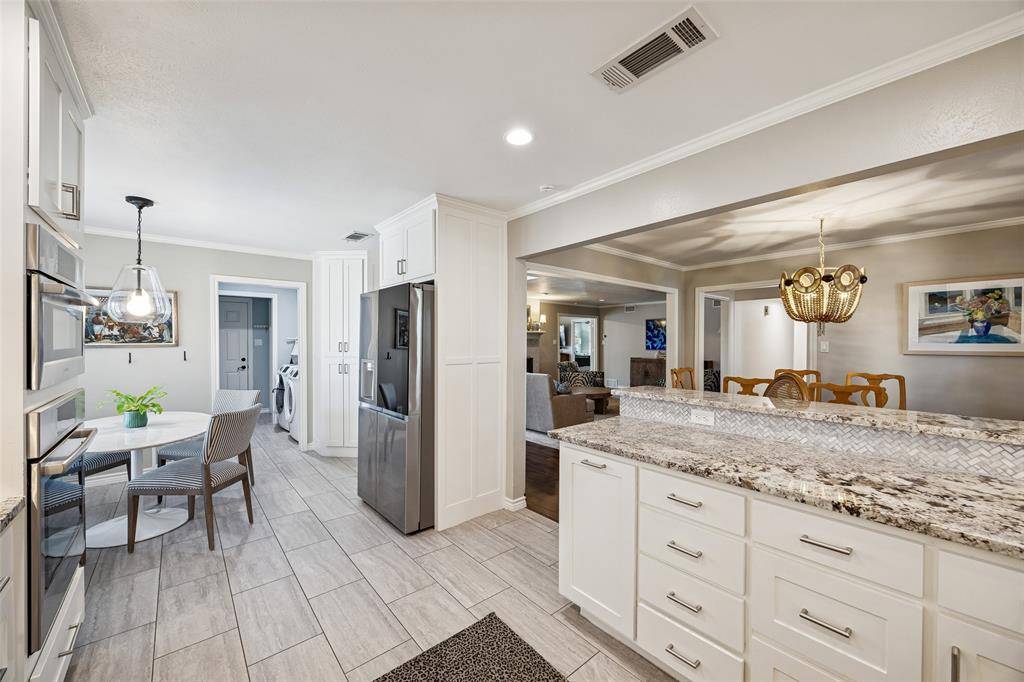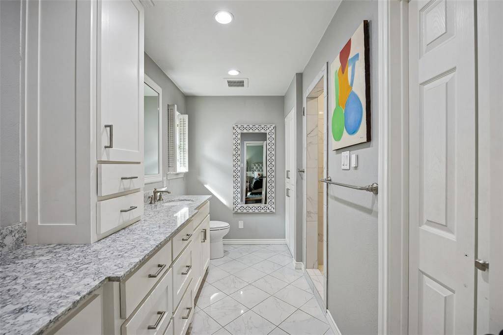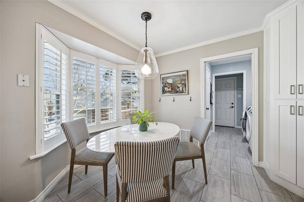 Welcome to a beautifully updated single-story ranch in the heart of Lakewood. This home seamlessly blends timeless charm with thoughtful modern updates, offering comfort, style, and functionality in one of Dallas' most sought-after neighborhoods. Designed for both everyday living and effortless entertaining, the open-concept floor plan features rich hardwood floors, elegant crown molding, and abundant natural light throughout. The inviting living room is anchored by a cozy gas fireplace, creating a warm focal point for gathering. The fully renovated kitchen flows seamlessly into a dining area and separate breakfast nook, showcasing quartz countertops, marble backsplash, stainless steel Bosch appliances, induction cooktop, double ovens, dishwasher, and vent-a-hood—perfectly suited for home chefs and hosting alike. The oversized primary suite offers a serene retreat, complete with a crisp, updated bath featuring dual sinks, quartz countertops, and a spacious walk-in closet. Two additional bedrooms are served by a well-appointed center hall bath. A private office provides an ideal work-from-home setup, while the versatile second living area or sunroom with built ins offers flexible space for a playroom or relaxing retreat overlooking the backyard. A full-size laundry room adds everyday convenience. Outdoors, a spacious patio is ideal for dining and entertaining, surrounded by mature trees and a wood privacy fence that create a peaceful, shaded setting. A custom treehouse adds character and charm, and the oversized garage provides ample storage and parking. Zoned to highly acclaimed Lakewood Elementary and just moments from Hillside Village and the trails and recreation of White Rock Lake, this home offers exceptional walkability and the best of the Lakewood lifestyle. A rare opportunity to own a move-in ready ranch in a premier Dallas location.