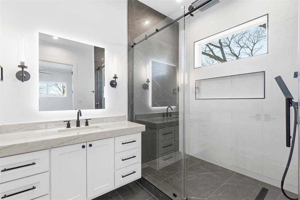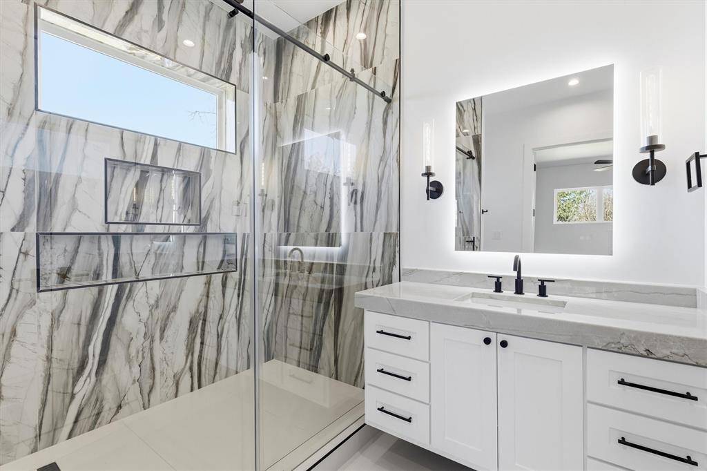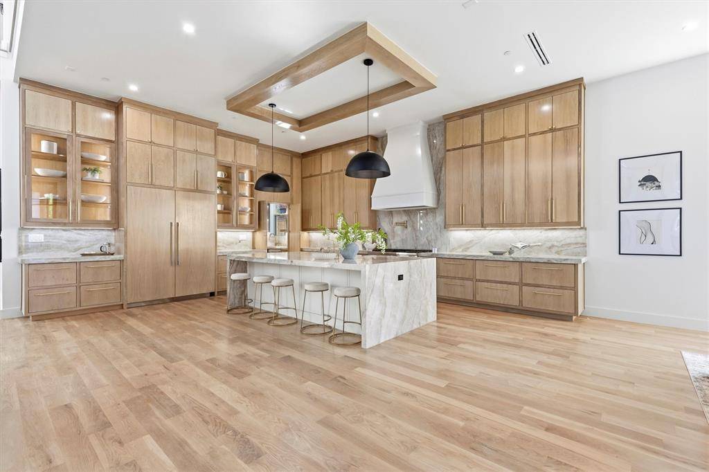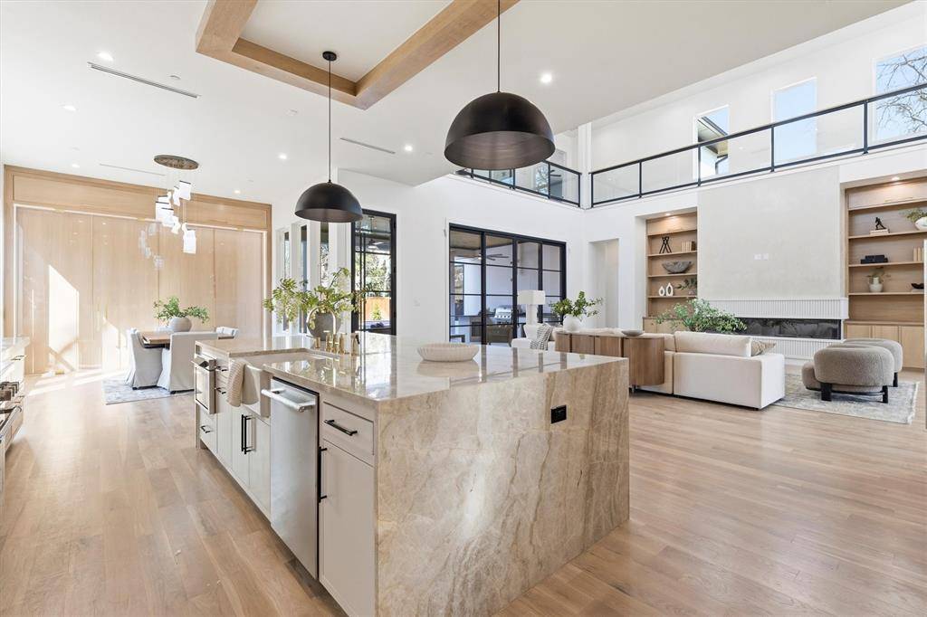 Driving up to this magnificent, newly completed home, you're immediately embraced by a sense of awe! The gentle murmur from the water feature, and the expansive circular drive are just the beginning of what's to come! A subtle, soft color palette flows throughout the living areas, creating a warm airy atmosphere. Natural Taj Mahal stone surfaces add gentle movement and organic texture, their creamy tones together with rich white oak cabinetry bring a warm, quiet luxury. A light-colored plaster fireplace in the living room serves as a serene focal point, its smooth texture and sculptural presence grounding the space, radiating comfort while maintaining a modern, minimalist elegance. Beautiful yet practical, and perfect for family living or entertaining, the kitchen and butler pantry are appointed with every possible thing to make cooking and entertaining a breeze. All Thermidor appliances, 2 refrigerators, the main one disappears into the cabinetry, 2 dishwashers, 2 microwaves, 2 farm sinks, commercial grade gas range and additional oven, not to mention the enormous pantry & pot filler! Spectacular dining room anchored by a full wall wine storage cabinet with glass doors. 6 large bedrooms with ensuite baths, can accommodate any size family; the 2nd bedroom on the first level would be an ideal mother-in-law suite. Dedicated office with built-ins is tucked away for quiet & decorated to make you want to work. The large, light-filled primary suite has a stunning ensuite bathroom, Hollywood tub in the wet area, and a large closet which opens to the laundry room for convenience! Home has commercial fire sprinkler system, 3 Trane AC units, an oversized 2-car garage that opens to the front, and a 1-car garage in the back with gated rear entry. No need to wait 9 months for your pool! The backyard is ready for enjoyment: 20x30 pool with spa, outdoor pool bath, and covered patio with outdoor kitchen. Unrivaled quality and attention to detail in this custom home!