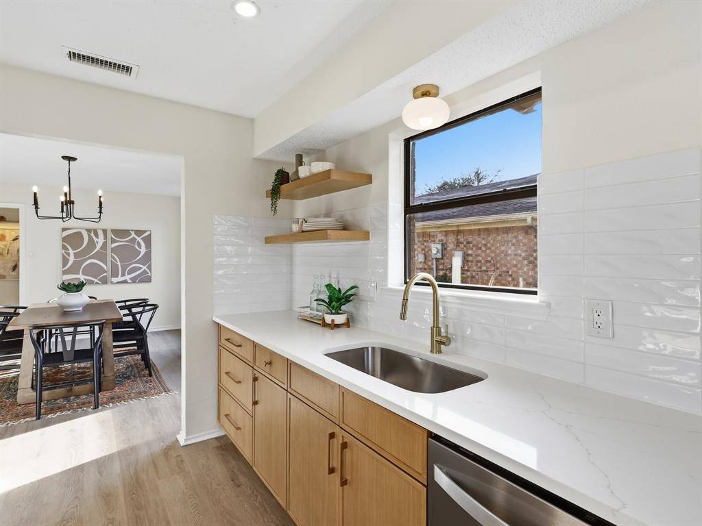 You'll feel right at home the moment you arrive at this beautifully renovated corner lot gem! Talk about prime location right next to a park that has a playground, soccer & baseball fields and more! Sitting on close to a quarter acre lot, this 3-bedroom, 2 bath home has been thoughtfully updated with the perfect balance of modern style and everyday comfort. Inside, the home is bright and open with vaulted ceilings with stunning cedar beams, fresh paint, designer lighting, and new luxury vinyl plank flooring and a cozy fireplace. The living space flows easily into the dining area and a gorgeous kitchen featuring all-new white oak cabinets, quartz countertops, and clean, modern finishes—perfect for everyday living and entertaining friends and family. The primary suite feels like a true retreat with a spa-like bathroom with white oak custom cabinetry, dual vanities, and a beautiful walk-in shower. The secondary bathroom carries the same elevated look with stylish tilework, and the additional bedrooms offer great space and storage. Out back the spacious backyard is ideal for barbecues, kids or pets at play, or unwinding under the stars. Renovated from top to bottom, this home offers the perfect mix of modern updates, timeless charm, and great curb appeal.