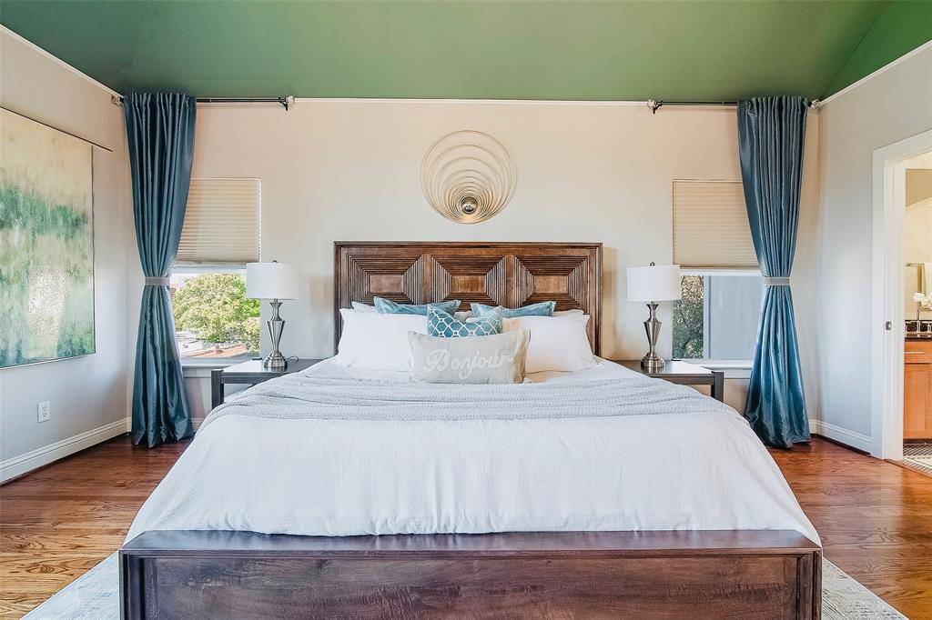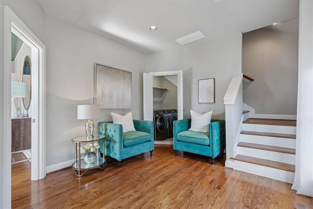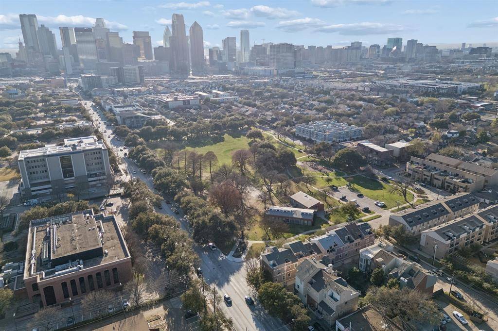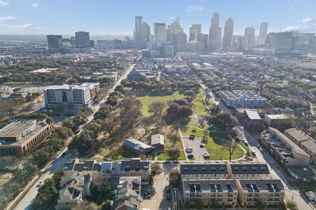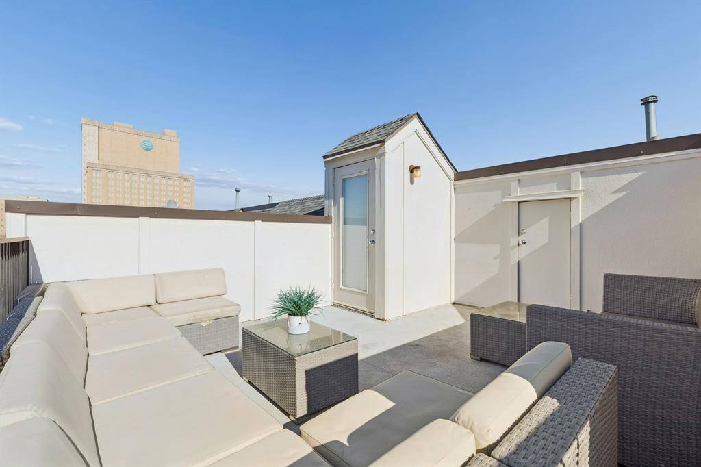 Interior Designer's spacious condo featuring 2 Beds, 3 Baths and 2,023 sq ft in a highly desirable location. Meticulously updated with real hardwood floors (no vinyl plank or carpet) and contemporary finishes throughout. The second floor boasts a large open concept living area with an abundance of natural light, large windows, and high ceilings. A modern chef's kitchen features all stainless steel appliances and quartz countertops on a large island. Upstairs, enjoy the master retreat with an en-suite bath featuring dual vanities and a large shower with a tub. Use the loft as a flex space or a home office. Downstairs, the first floor offers a large second bedroom and full size bath with a door leading to a small fenced back yard. Entertain on the private roof top patio overlooking the downtown skyline or grill on the balcony. Enjoy the outdoors with a quick walk to the Exall park and recreation center! Centrally located minutes away from Downtown, Uptown, Baylor Medical Center, the Arts District, and Lower Greenville. HOA DUES INCLUDE: GAS, WATER, TRASH, FRONT LANSDSCAPING, EXTERIOR INS, AND PEST CONTROL. All staging furniture is available for sale. This condo is also listed for lease.