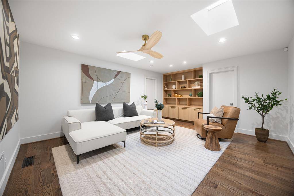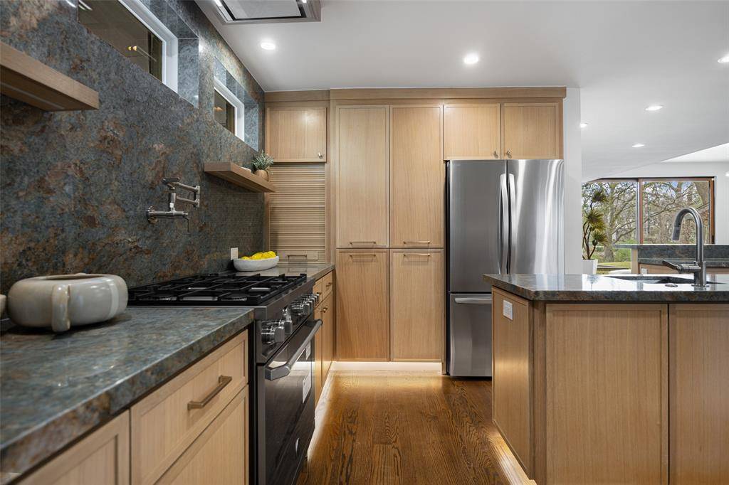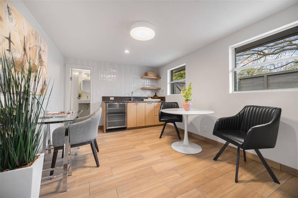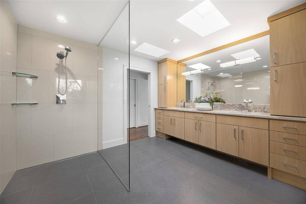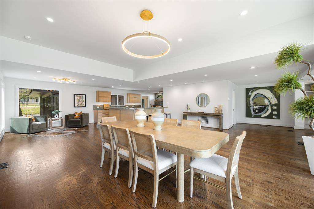 A One of One! Rarity in Preston Hollow. This Re-imagined Mid Century Modern from the 1950s sits upon a private Oversized Lake Lot with a Boat House. You feel like you are on vacation the second you step through the doors. The restoration on this home began in 2025 with designer Debra Stewart and prior installment by Charles D Bobo. The Design improved the functionality of the home while maintaining the homes architectural spirit. In the Kitchen new Clean lined white oak cabinetry was installed, Rare turquoise-toned imported granite counters, New SS Appliances, water filler, backsplash, under-mount lighting and refinished oak floors. Living spaces were opened creating a more expansive and connected environment. A new fireplace clad in Old Chicago Brick flanked by Built in Oak cabinets. Near the entry a custom architectural slat wall feature offers subtle separation while adding rhythm and texture to the interior. Throughout the home electrical systems were modernized, insulation was upgraded with foam insulation, and New Hvac was installed. Primary Bedroom was fully updated to match the quality of the main living spaces w New Hardwood Floors, cabinets, counters, lighting, and plumbing. The front of the home has a separate space for an office or gym with an ensuite full bath. Outside was improved with fresh paint, drainage, and landscaping. While the lakeside fishing hut offers a charming retreat for casting a line into the fully stocked lake. A garden sink and outdoor shower adds to the properties unique character. Set within a tranquil lakeside setting. This home offers a rare blend of architectural authenticity and modern livability. From its natural materials to the thoughtful updates, Westmere Circle is a home that respects the past while beautifully embracing the present.