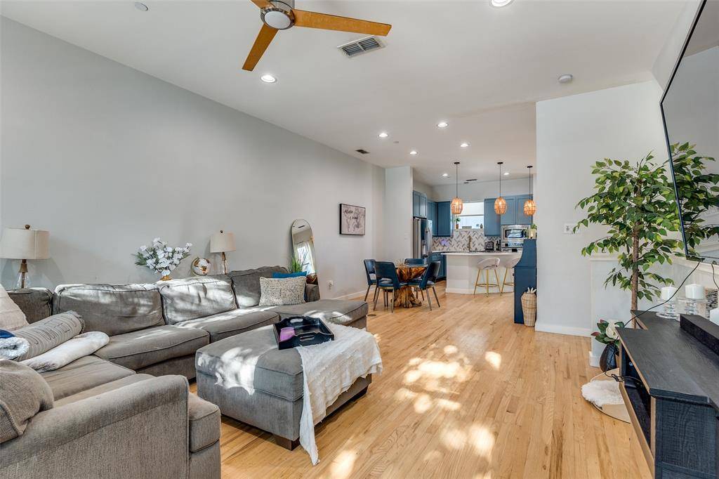 Enjoy an unbeatable location, walkable to restaurants at Ross & Hall and Excall Park, minutes from Klyd Warren Park, Downtown, Uptown, and Deep Ellum. Additional features include an attached 2-car garage, community pool access, and low HOA dues. Recent upgrades: New AC (2024), tankless water heater (2023), luxury vinyl plank flooring (2024), polished porcelain tile entry (2024), Samsung XL Smart washer & dryer (2023-conveys).