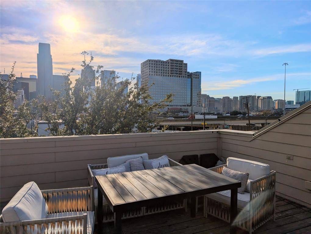 Welcome to this beautifully updated townhome featuring a PRIVATE rooftop deck with FRONT ROW, unobstructed views of downtown Dallas, a rare find at this price point. Even more unique, this home offers exceptional privacy with no direct neighbors in front, so you can enjoy your space without windows facing in. A large mature tree adds natural screening from nearby foot traffic, creating a peaceful setting where you can wake up feeling like you're in a garden oasis, right in the heart of the city.