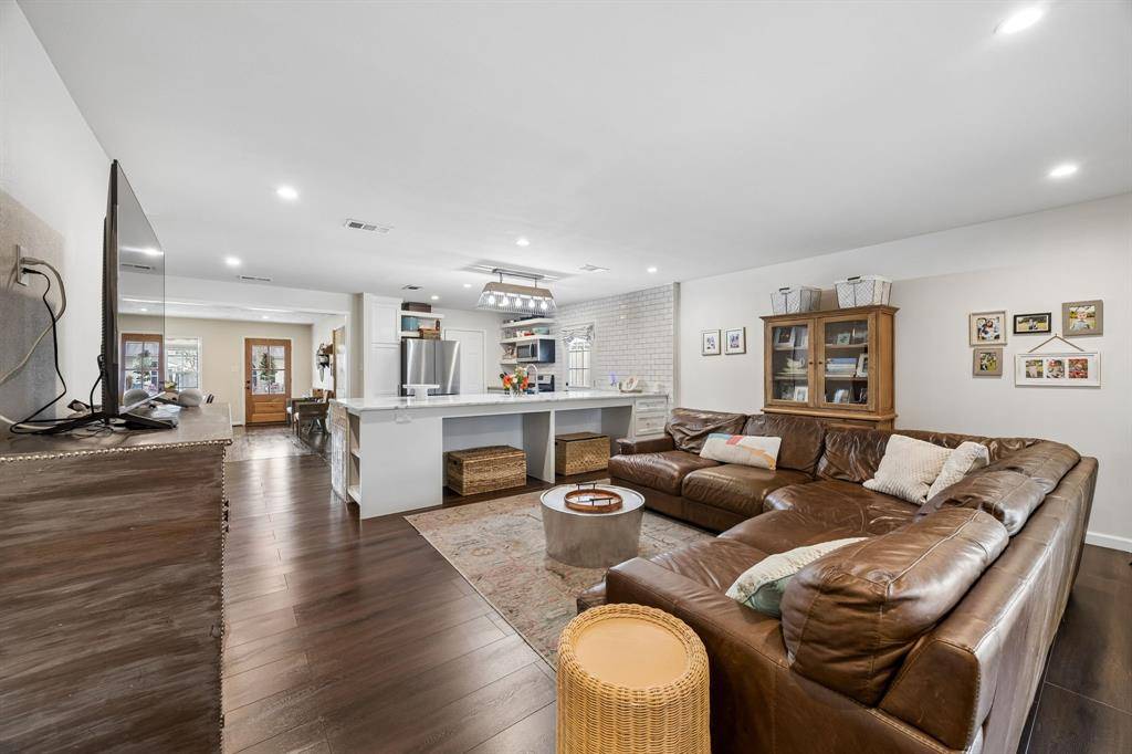 At 1,855 square feet, this cottage lives larger. The homeowners completed a pier-and-beam addition in 2022 with no plans to move, incorporating intentional design and quality updates throughout. Spacious living and dining areas flow seamlessly into the beautifully updated kitchen featuring a large peninsula with quartzite countertops, two pantry systems, a generous dry bar with abundant cabinetry, gas range, built-in wall oven, and two dishwashers—ideal for both entertaining and everyday living.