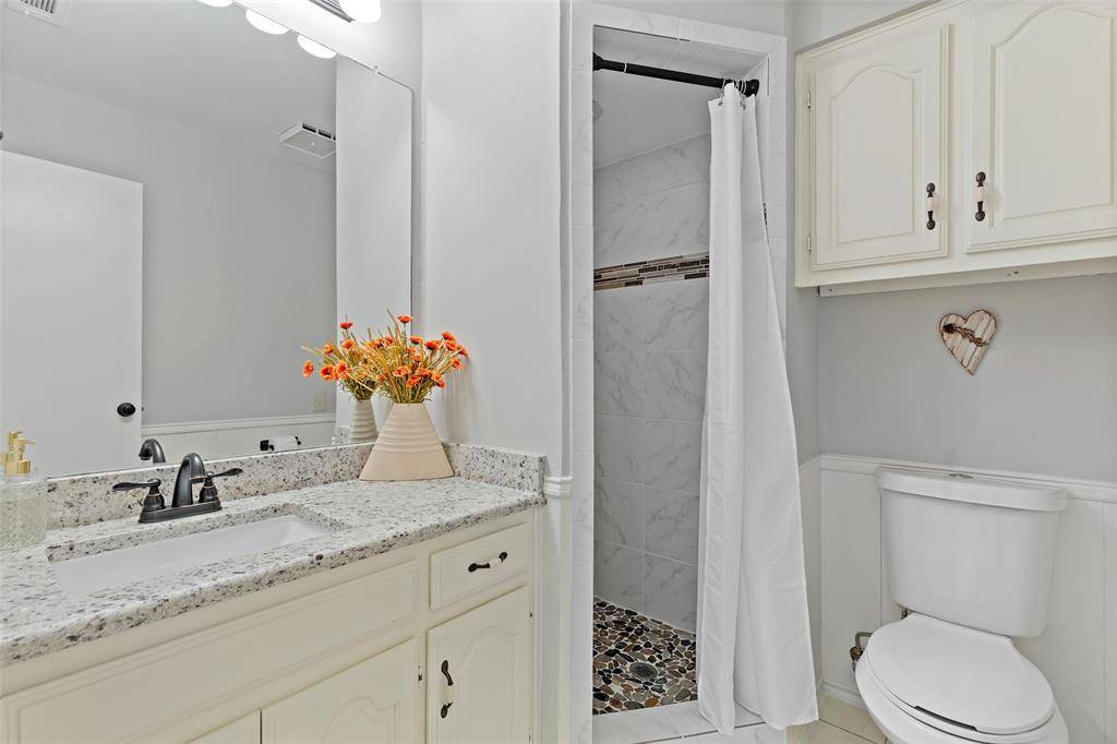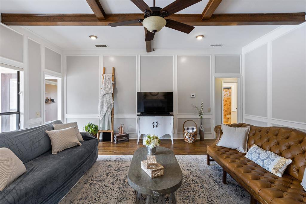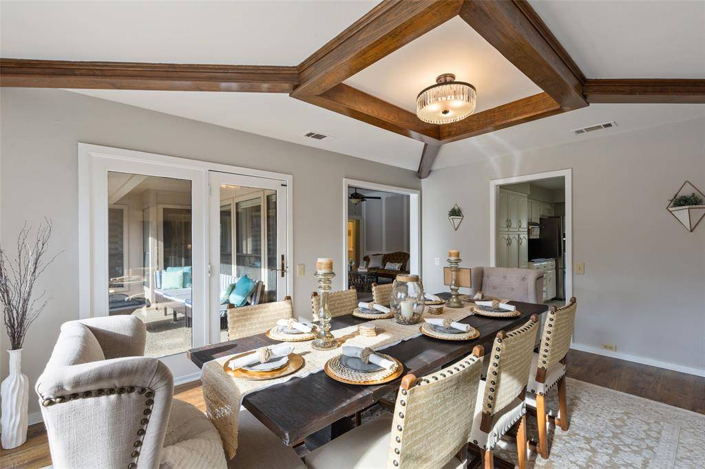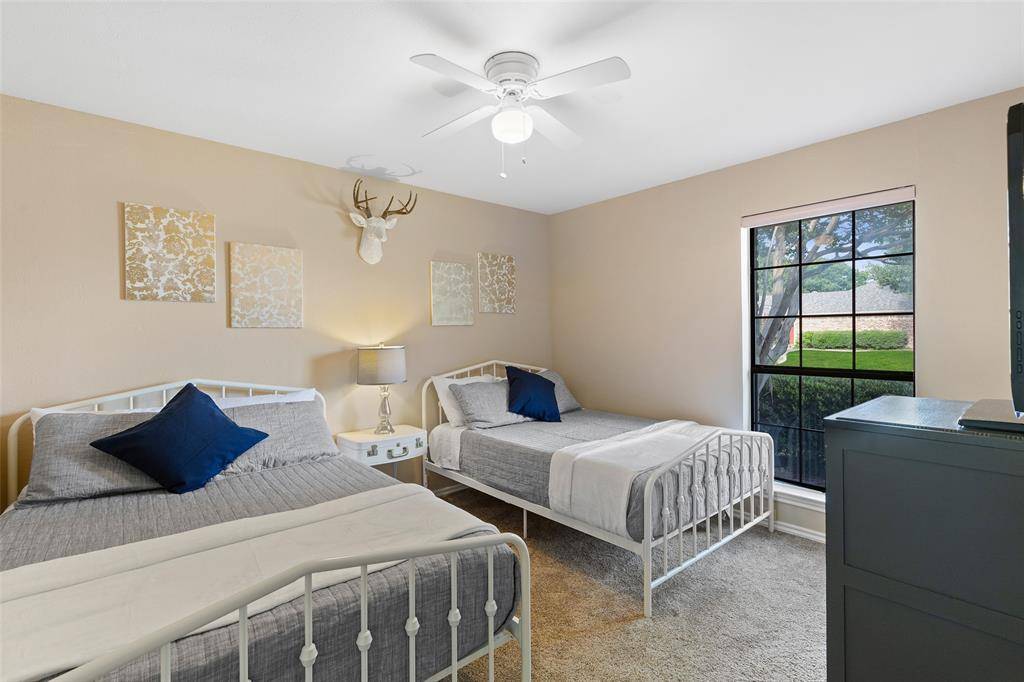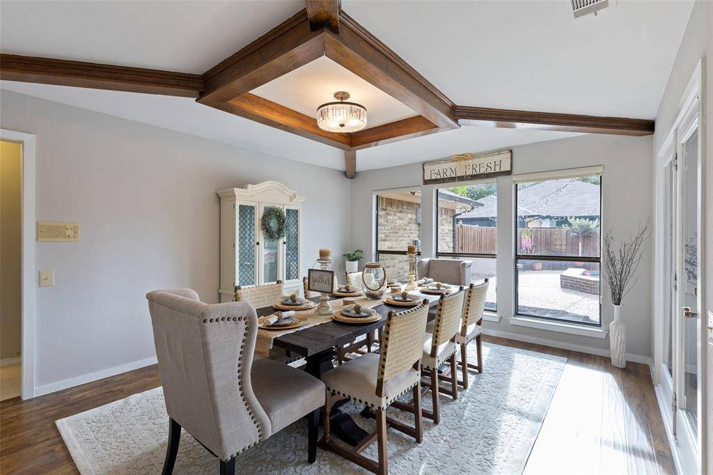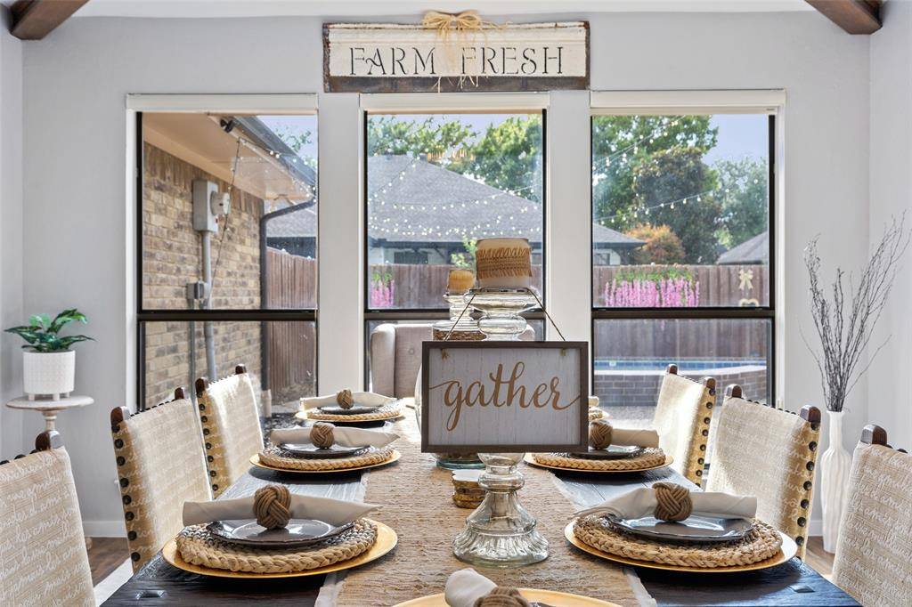 Welcome to this one-story home in a quiet, peaceful Plano neighborhood. The moment you step into the spacious foyer you'll notice the open layout with inviting living spaces filled with natural light including views of the oversized pool. The flexible floor plan allows you to truly make the home your own. Need an office? Front living area can easily serve as an office or dining room. The dining room can function as a second living area open to the kitchen. Bath with shower near the utility room provides convenient access after pool time. Kitchen features stainless steel appliances, abundant cabinetry and a cheerful breakfast area....the perfect place to start your day while enjoying views of beautiful crape myrtle trees. The main living area is spacious and welcoming highlighted by wood ceiling treatments adding warmth and character. Fresh interior paint, ceiling fans, and new blinds throughout give the home a bright updated feel. Three additional spacious bedrooms offer flexibility for family or guests with two sharing a Jack-and-Jill bath. The private primary suite is thoughtfully located on the opposite side of the home from the secondary bedrooms offering indirect access to the backyard. Updated primary bath features granite countertops with dual sinks and frameless glass shower doors for a clean, modern look. In total, the home offers three full bathrooms providing ample space for everyone. Step outside to enjoy the covered patio overlooking the resurfaced oversized pool. Your own backyard private oasis is perfect for relaxing or entertaining. Smart home features include thermostat, GDO's, keypad entry and HVAC system. Recent updates include roof, fresh exterior paint, some interior, gutters, hot water heater, garbage disposal, pool filter and new blower motor for the A-C system. This well maintained home offers the ideal combination of location, updates, excellent schools and outdoor living in desirable West Plano.