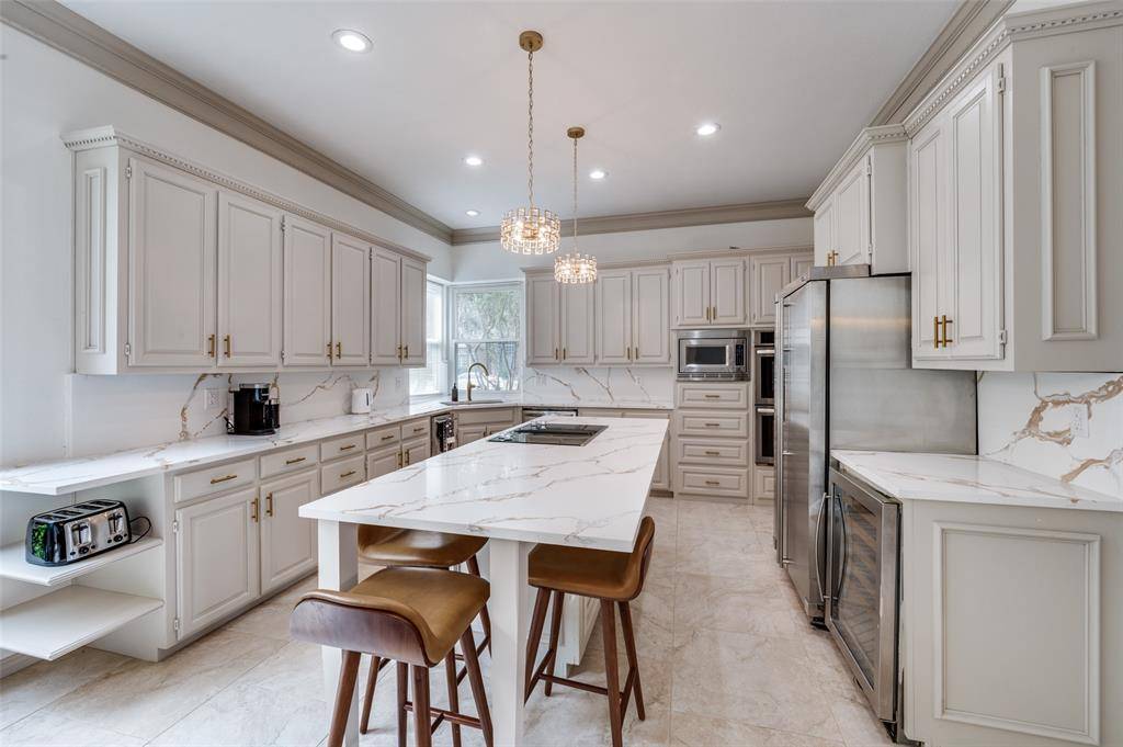Gourmet Kitchen with high-end quartz countertops and updated cabinetry.