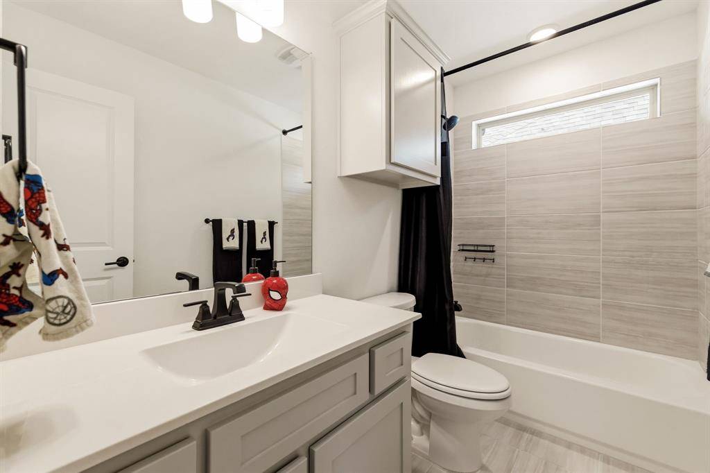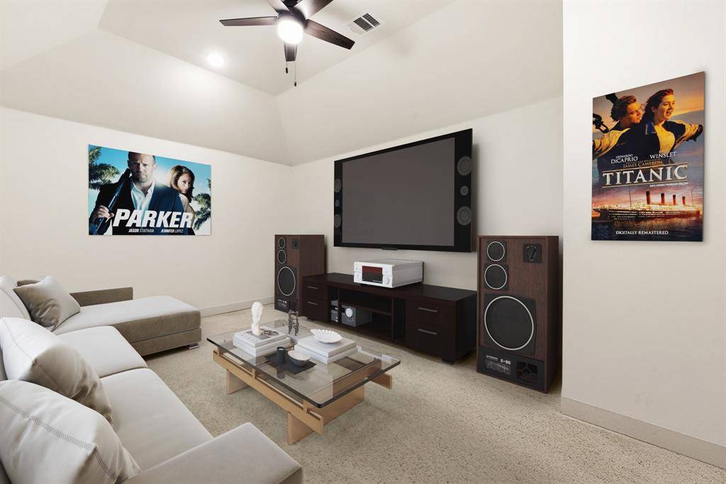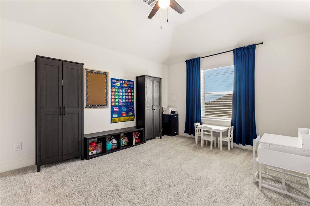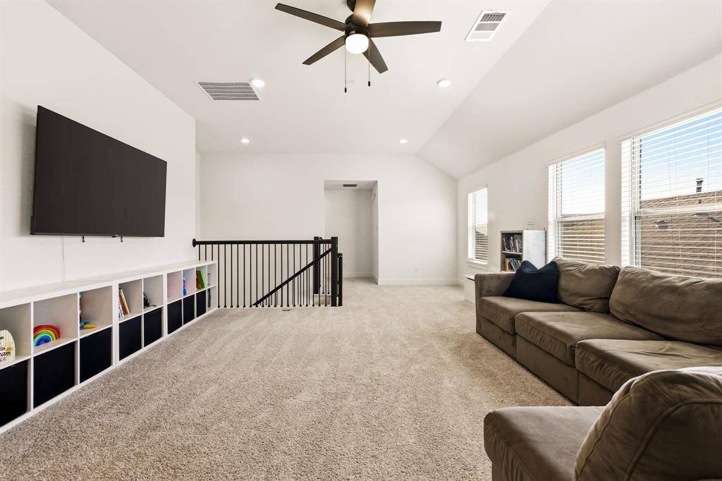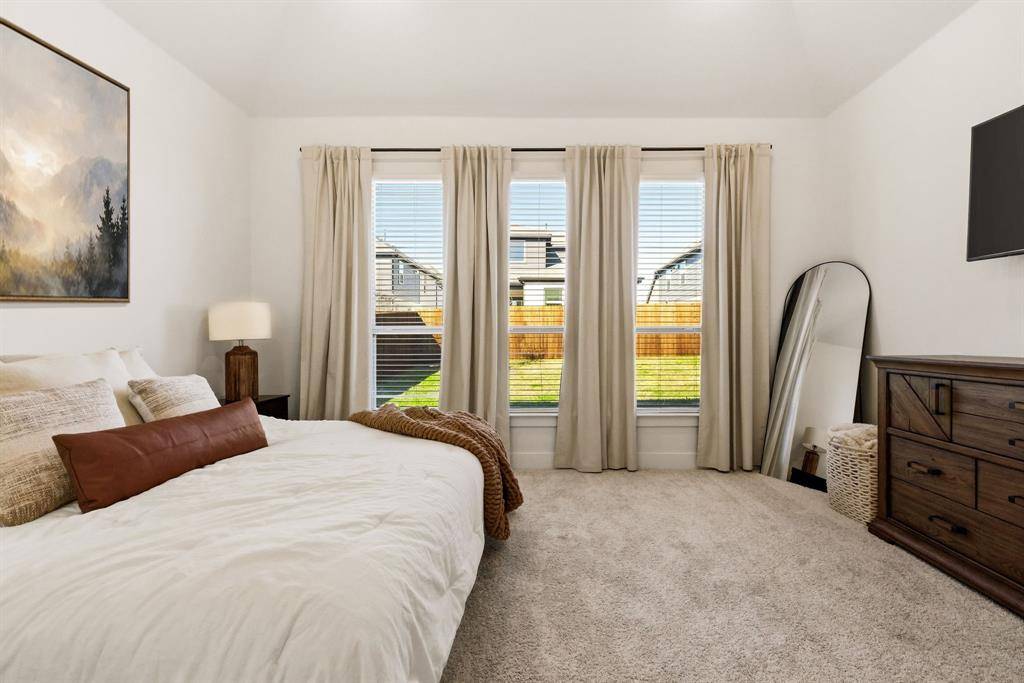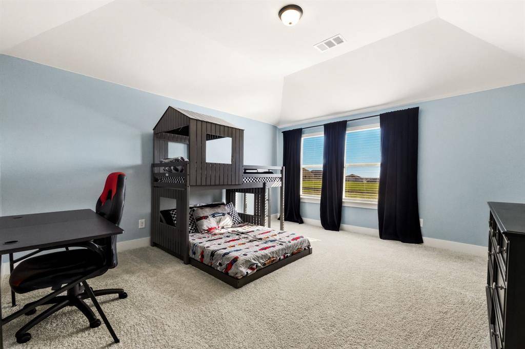 Tucked within The Villages of Hurricane Creek, this beautifully designed 2024 First Texas Homes residence offers 3,358sf of thoughtfully planned living space with a layout tailored for modern living. Positioned on a quiet cul-de-sac, the home unfolds across an open concept floor plan with 10ft ceilings and light filled living spaces that seamlessly connect the kitchen, dining, and living area. At the heart of the home, the gourmet kitchen is designed for both everyday living and entertaining. Featuring quartz countertops, custom cabinetry, stainless steel appliances, a gas cooktop, double ovens, and an oversized island, the space anchors the home with both style and functionality. The primary suite is privately positioned on the first floor and features a spa inspired bath with double vanities, a soaking tub, separate shower, and a spacious walk in closet, creating a well appointed private retreat. Upstairs, the home continues to impress with four additional bedrooms, a game room, and a dedicated media room, offering flexible spaces for entertaining, work, or relaxation. Step outside to enjoy the covered patio and fenced backyard, ideal for outdoor gatherings or quiet evenings at home. Additional highlights include lvp flooring, extra storage space in the garage, and solar panels designed to help reduce energy costs. Located in the growing city of Anna, residents enjoy community parks and trails along with convenient access to Highways 75 and 121, making commuting and everyday errands simple - an exceptional opportunity to own a home where design, function, and location align beautifully. This property is eligible for an exclusive incentive of 1% by using the preferred lender on this home.