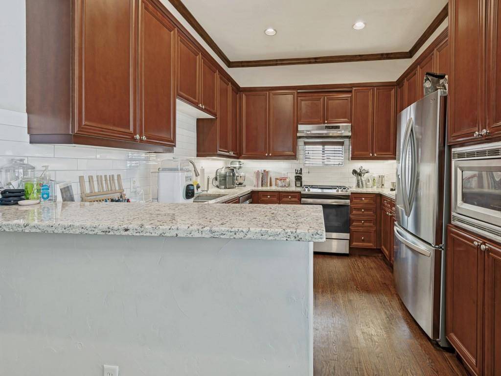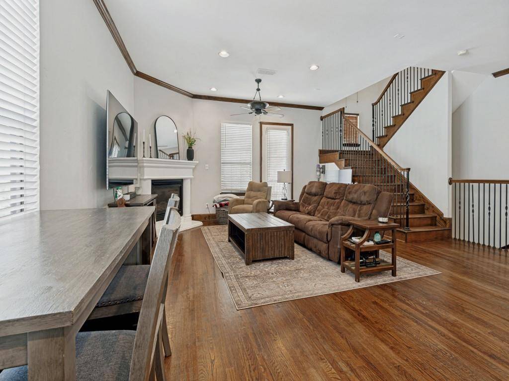 This charming Mediterranean-style townhome in the lively Bryan Place neighborhood is an end unit with wood floors throughout and custom tile in the bathrooms. The second floor features a spacious living room with a cozy fireplace and balcony, along with a kitchen boasting granite countertops, a stylish backsplash, and stainless steel appliances. A versatile room can serve as an office, dining area, or, as it's currently used, a nursery. The expansive master suite on the third floor offers a balcony, sitting area, large walk-in closet, dual sinks, separate shower, and a luxurious jetted tub. On the first floor, you'll find a guest room with its own full bath. Enjoy the unbeatable walkability and vibrant city lifestyle of Bryan Place, close to trendy restaurants, bars, Exall Park, the private community pool, and more!