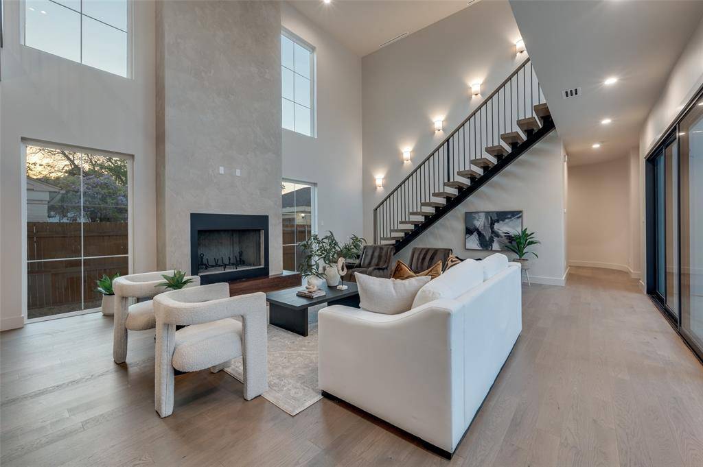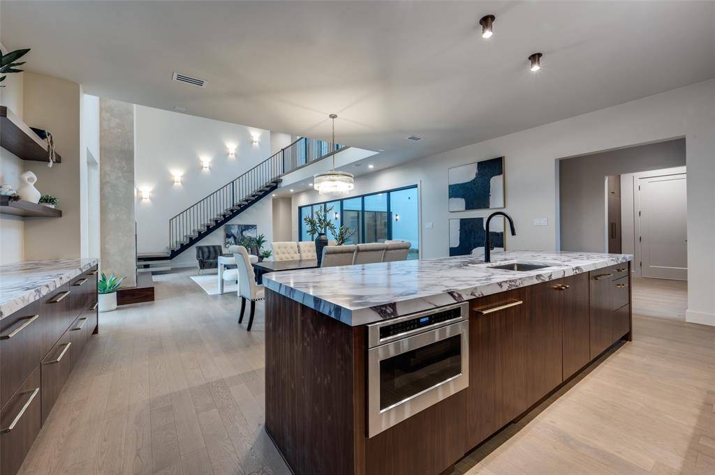Welcome to an exquisite, newly constructed residence in the heart of Midway Hollow, where refined transitional design meets elevated everyday living. Crafted with exceptional attention to detail, this home features a distinctive and timeless façade that sets the tone for the luxury within. Step inside to an expansive open concept living room complete with a limewash and travertine fireplace, kitchen, and dining area, designed for both comfortable living and effortless entertaining. Sun filled spaces highlight the stunning Lujo Vida quartz countertops that grace the kitchen, offering a sophisticated and durable centerpiece to the home's culinary space. The chef inspired kitchen is complemented by a fully equipped butler's kitchen, ideal for prep work, catering, or keeping gatherings beautifully organized. Retreat to the spa like primary suite where a serene atmosphere surrounds you. The primary bedroom also features a dedicated sitting area complete with a beverage refrigerator and wet bar, creating a private retreat perfect for morning coffee or evening relaxation. Indulge in a breathtaking primary bathroom featuring a private sauna, oversized shower, large soaking tub, and elegant Louise Blue natural marble finishes that elevate the space with timeless beauty. Wake up to peaceful views, as the primary bedroom overlooks the secluded backyard, creating a true sanctuary. Outside, the private yard is designed for year around enjoyment, complete with a cozy fire pit perfect for unwinding or hosting intimate gatherings under the Texas sky. Upstairs, you will find four guest bedrooms, each with their own ensuite bathroom, as well as a living room, gym, and media room. This exceptional Midway Hollow home blends sophisticated design with thoughtful luxury, an unparalleled opportunity to own a truly remarkable new construction home. Located within minutes of many Dallas private schools, Dallas North Tollway, Central Market, and Preston Center.