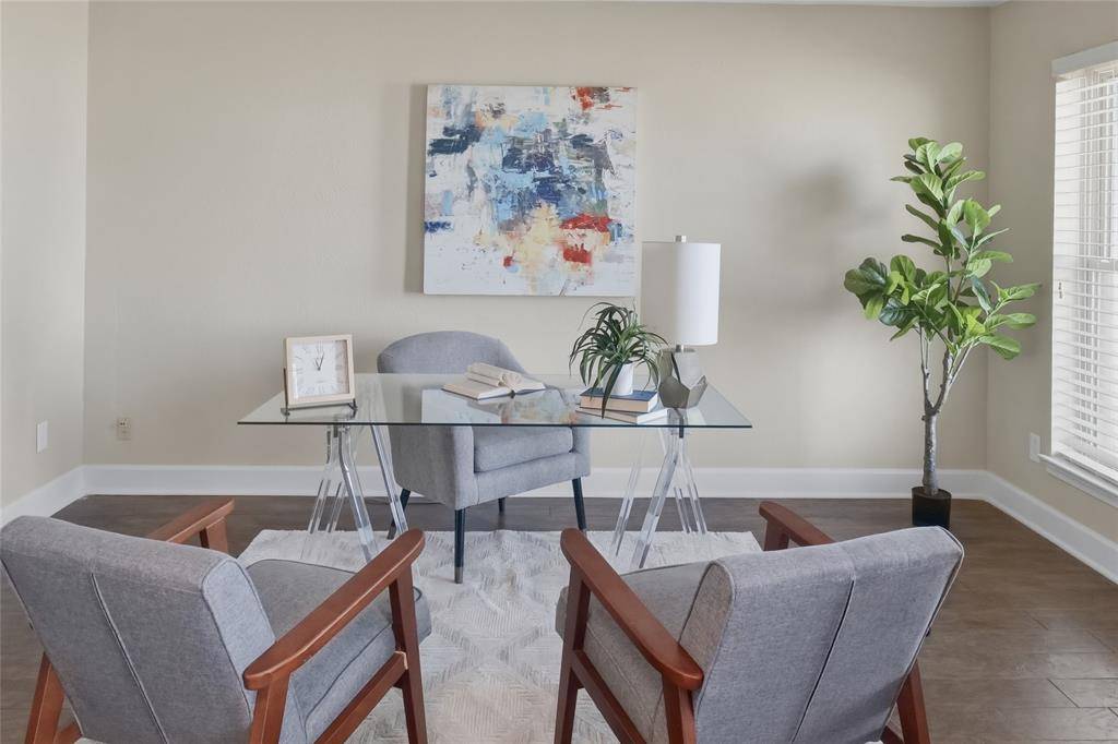 Prepare to be impressed by this charmingly updated, move-in-ready Garland gem! Tucked under a canopy of mature shade trees, this home expertly blends modern sophistication with classic suburban charm. The light-filled interior features high-end dark Luxury Vinyl Plank flooring and a versatile front flex space, perfect for a professional home office, formal dining, or second living area.