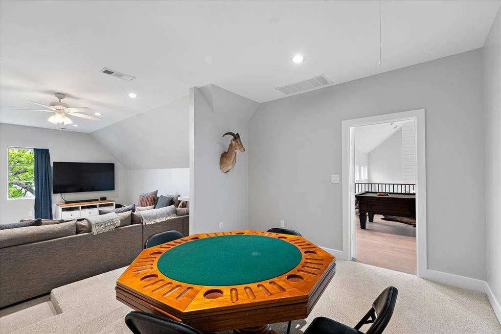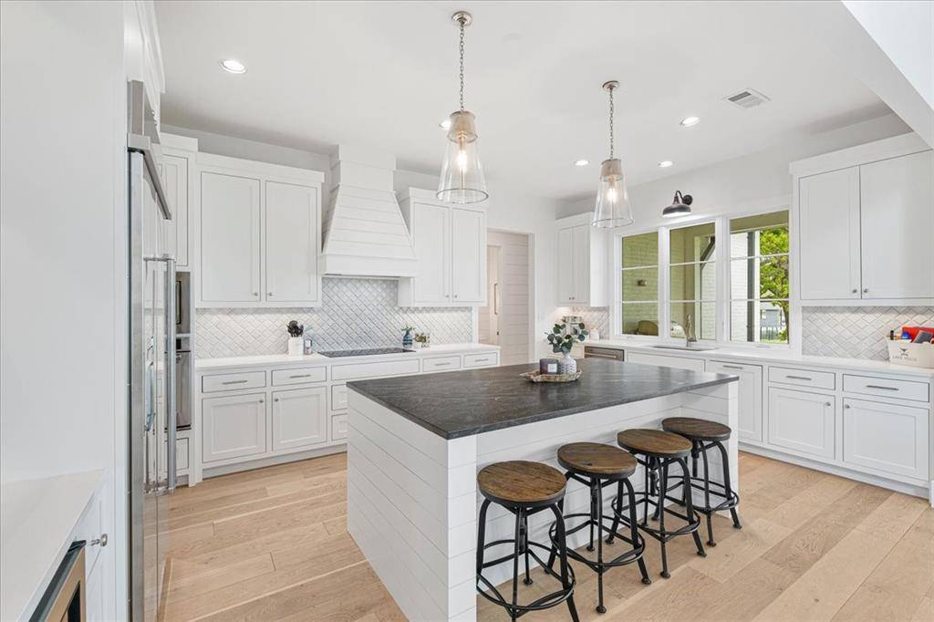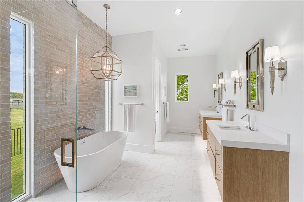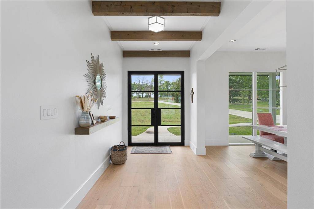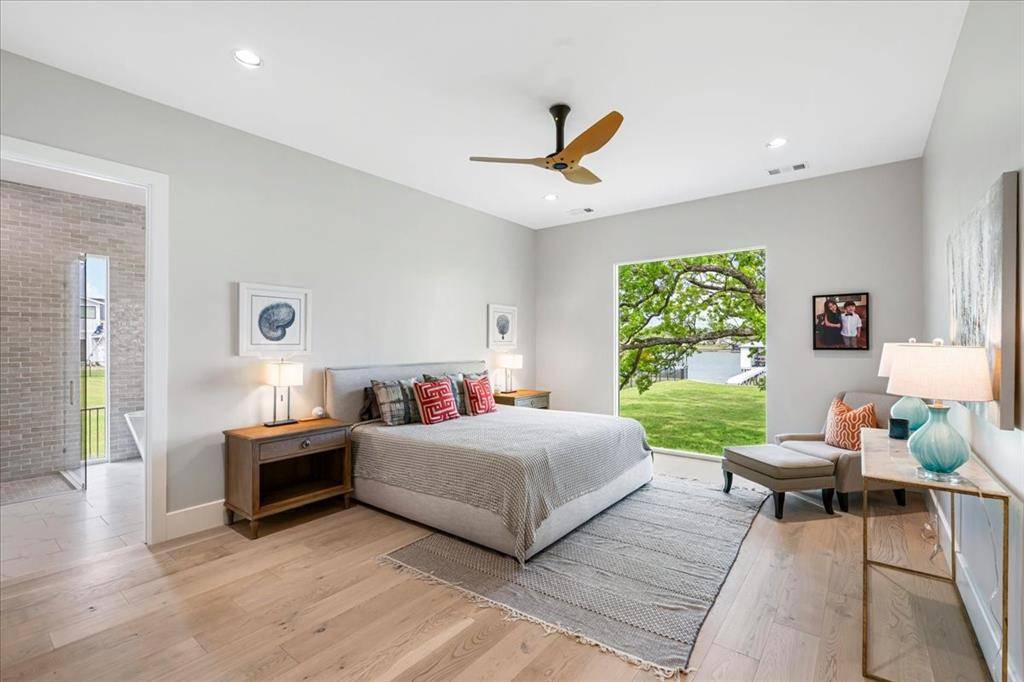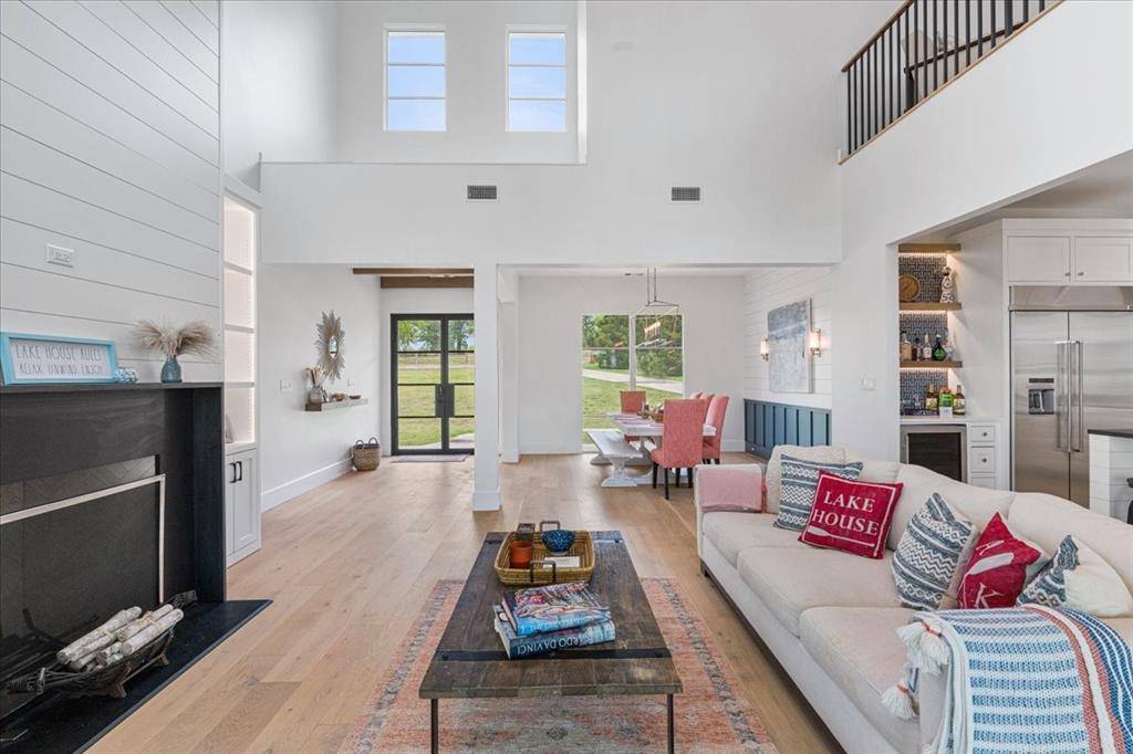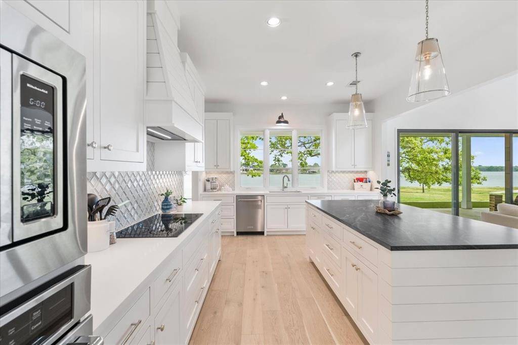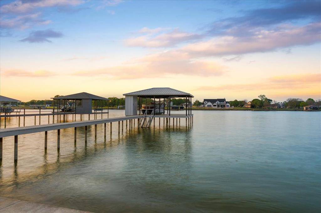 Discover the epitome of lakeside luxury at this extraordinary 5 yr old lake retreat on the shores of Richland Chambers Lake, just 65 miles south of Dallas. Nestled on nearly an acre of open water frontage, this home offers breathtaking views, impeccable craftsmanship, and every amenity you could dream of. Step through the stunning front doors into a foyer that opens to an casual dining space, featuring wainscoting and a beautiful chandelier. The heart of the home is the living room, where a wall of sliding glass doors seamlessly blends indoor and outdoor living, complemented by a handsome fireplace framed by custom built-ins. The chef's kitchen is a masterpiece, designed for gathering and entertaining. It boasts a massive center island, top-tier appliances, a bar nook with a wine fridge, and a spacious walk-in pantry—all positioned to showcase the serene lake views. The primary suite is so peaceful, highlighted by a nearly floor-to-ceiling picture window overlooking the water. The spa-like bathroom offers dual floating vanities, a freestanding tub, a generously sized shower all adorned with Riad tile, and quartz countertops. Two additional ensuite bedrooms feature baths with Ann Sacks and Walker Zanger tiles, ensuring every guest feels pampered. Upstairs is a 30-foot-long bunkroom that accommodates up to 12 guests and includes a full bath. A loft space provides a versatile second living area, while the game room is ideal for movie nights, poker games, or simply unwinding. Outside, a wraparound porch invites you to relax, grill, or take in mesmerizing sunsets. The private boat dock includes a single slip, a deck for fishing or lounging, and a storage closet for your lake essentials. Every detail of this builder's personal home has been carefully curated including the 10-inch white oak plank floors, Restoration Hardware fixtures, Trane high-efficiency HVACs, standing seam metal roof, radiant barrier, and whole-house foam encapsulation and loads of storage. Exceptional