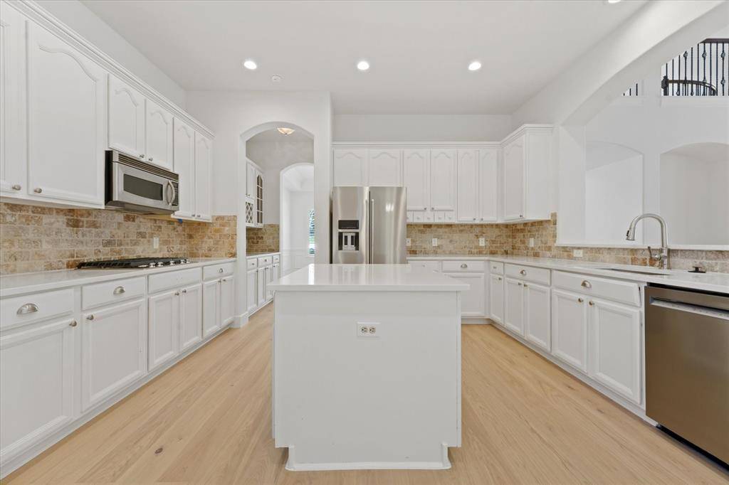 The chef's kitchen serves as the home's centerpiece, boasting a custom backsplash, double ovens, and a walk-in butler's pantry, while the ground-floor primary suite offers a secluded retreat with a fireside sitting area. Whether you're hosting in the private media room—complete with its own bar—or relaxing in your privacy minded patio space, this residence is designed for sophisticated entertaining. Perfectly positioned near the Stonebriar Country Club and Frisco's premier dining districts, this is more than a home; it's a lifestyle defined by quality and convenience.