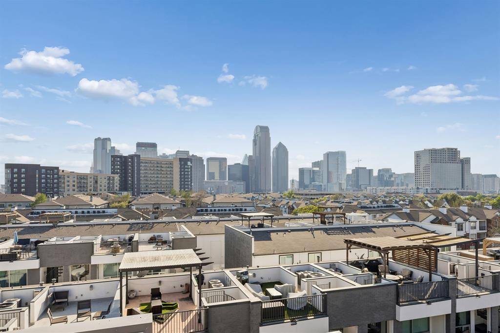 Nearly 700 square feet of private balcony space extends the living areas outdoors. Community amenities include a 55-foot resort-style pool with cabana, 2,000-square-foot sky deck, fitness center, secure pedestrian entry, and climate-controlled garage. A rare opportunity for sophisticated, lock-and-leave living in the heart of Dallas.