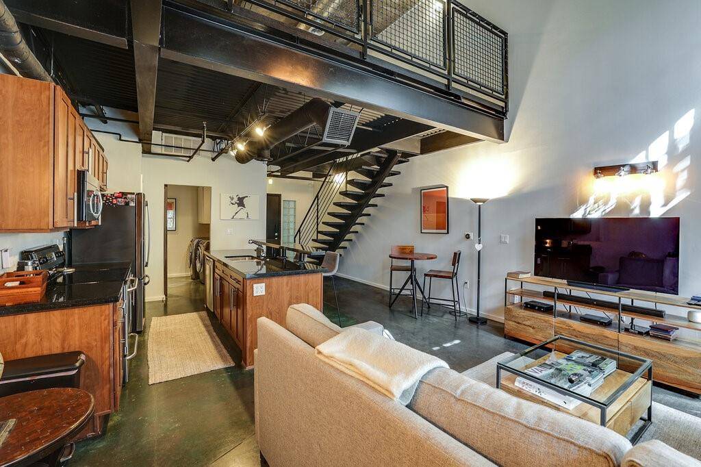 Incredible loft style condo in the heart of State-Thomas, offering unbeatable access to the Arts District, Uptown, and Griggs Park. This beautifully updated unit features an open-concept first floor with a spacious living area and fully equipped kitchen, complete with granite countertops, a kitchen island, and ample storage. Upstairs, the private primary suite boasts updated flooring, a renovated bath with separate shower, and a generous walk in closet. Soaring vaulted ceilings and abundant natural light enhance the home's modern loft feel. Community amenities include a resort style pool, gated access, fitness center and clubhouse. Monthly HOA covers facility use, insurance, maintenance, management fees, sewer, and water, making for a low-maintenance, lock and leave lifestyle in one of Dallas' most desirable neighborhoods.