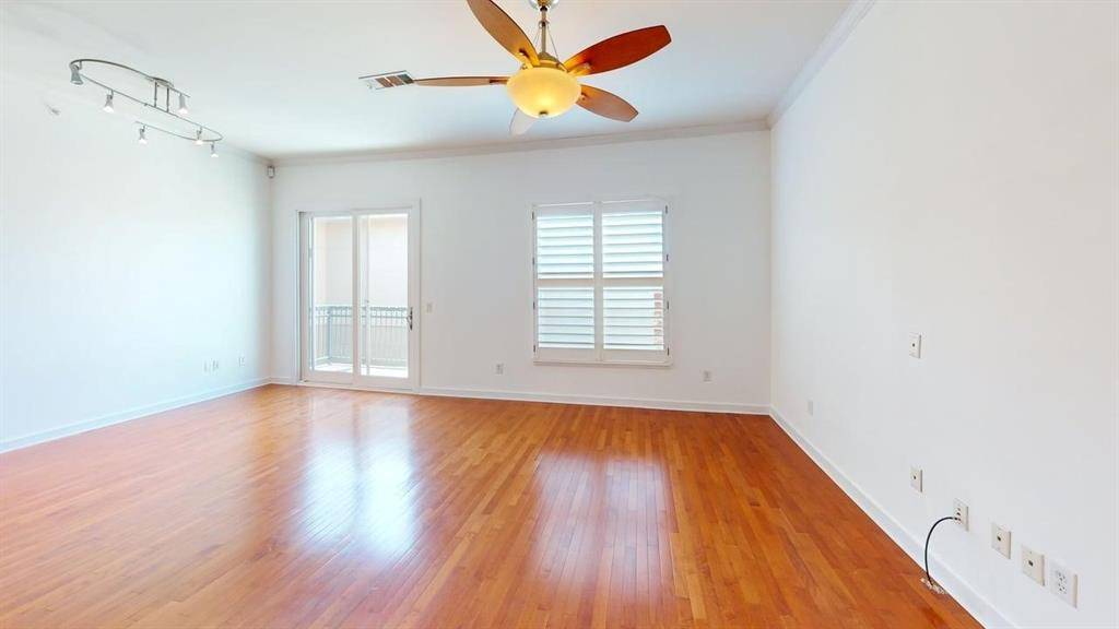 This spacious 1,334 square foot two-bedroom, two-bathroom condo offers modern living in the heart of Dallas, ideally located on McKinney Avenue with easy access to the city's best dining, shopping, and entertainment.The well-appointed kitchen features a full suite of appliances including a refrigerator, oven, microwave, dishwasher, and a brand-new stovetop, all complemented by granite countertops, a breakfast bar, and a pantry for ample storage. The open-concept living area showcases real wood floors and is filled with natural light, creating a warm and inviting space perfect for both relaxing and entertaining. A dedicated dining area, ceiling fans, and thoughtful finishes throughout enhance everyday comfort. Step outside to a private balcony with shutters and blinds, offering a peaceful outdoor retreat. The primary suite includes a spacious walk-in closet, while the second bedroom features an oversized closet, making it an ideal space for guests, a home office, or additional storage. Both bathrooms are finished with elegant tile flooring. Additional features include washer and dryer for added convenience. Parking is a standout feature, with one covered parking space and one additional uncovered space included.