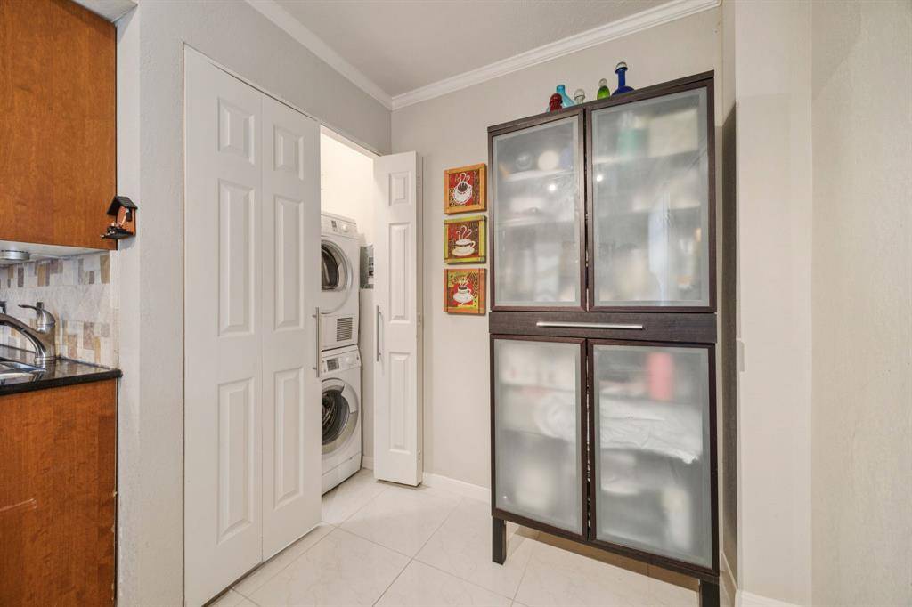 Step into this charming first-floor condo in the heart of North Dallas—offering 3 bedrooms, 3 outdoor patios, and postcard-worthy views of the shimmering pool. Inside, you'll find an open, airy living and dining space—perfect for hosting guests or enjoying quiet evenings at home. Laminate and tile flooring throughout keep things low-maintenance. The kitchen features granite countertops, backsplash, modern cabinetry, stainless steel appliances, and decorative lighting that adds just the right touch of warmth. A cozy breakfast nook overlooks the pool, making every morning feel just a little more peaceful. The convenience continues with a washer and dryer included, tucked neatly inside a utility closet off the kitchen. One of the bedrooms offers the flexibility to be a dedicated home office or study, complete with access to a large private patio. The spacious primary suite includes sliding doors to the patio, a HUGE walk-in closet, and a private bath. The generous secondary bedroom also includes its own walk-in closet. The hall bath features a stylish vanity, glass shower surround, and porcelain tile. The HOA covers ALL UTILITIES and exterior maintenance, making easy living truly effortless. You'll also enjoy one assigned covered parking spot, plus ample street parking right outside. And the location? Simply unbeatable. You're minutes from major freeways, medical facilities, Downtown Dallas, shopping, dining, and the scenic Northhaven Trail for walking and biking. A wonderful opportunity for comfortable, convenient living in one of Dallas' most desirable areas. Schedule your visit today!