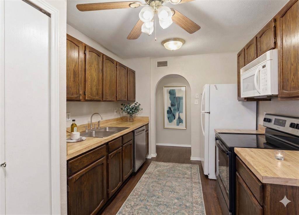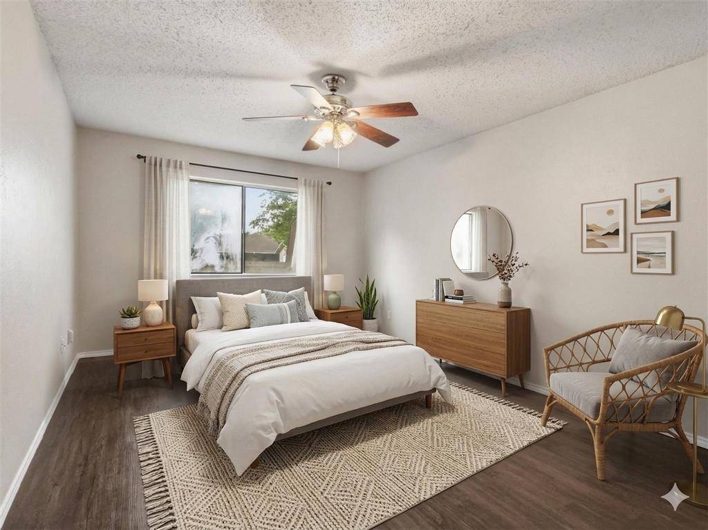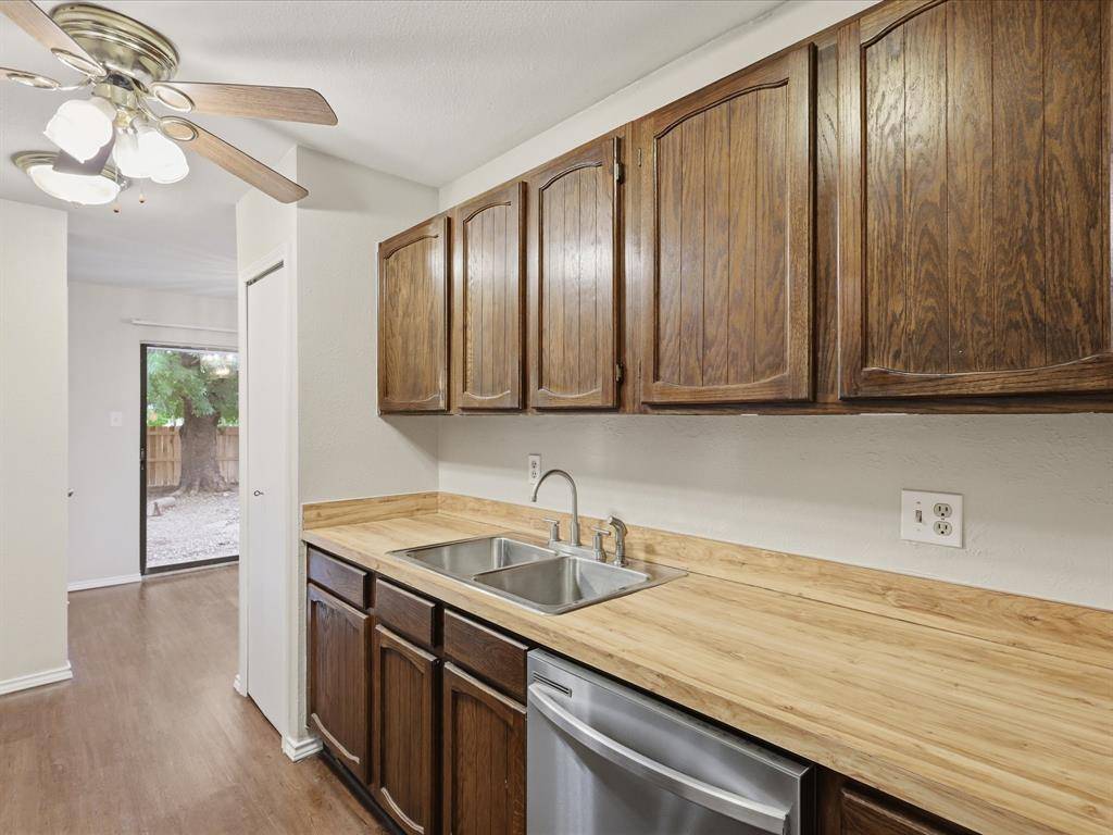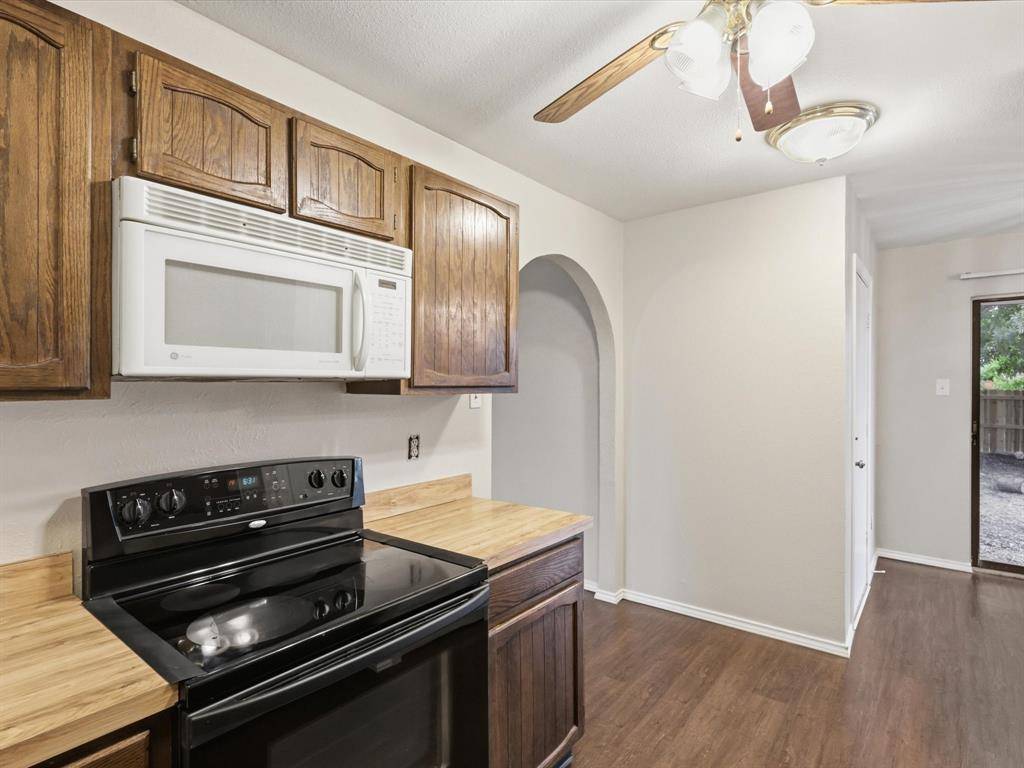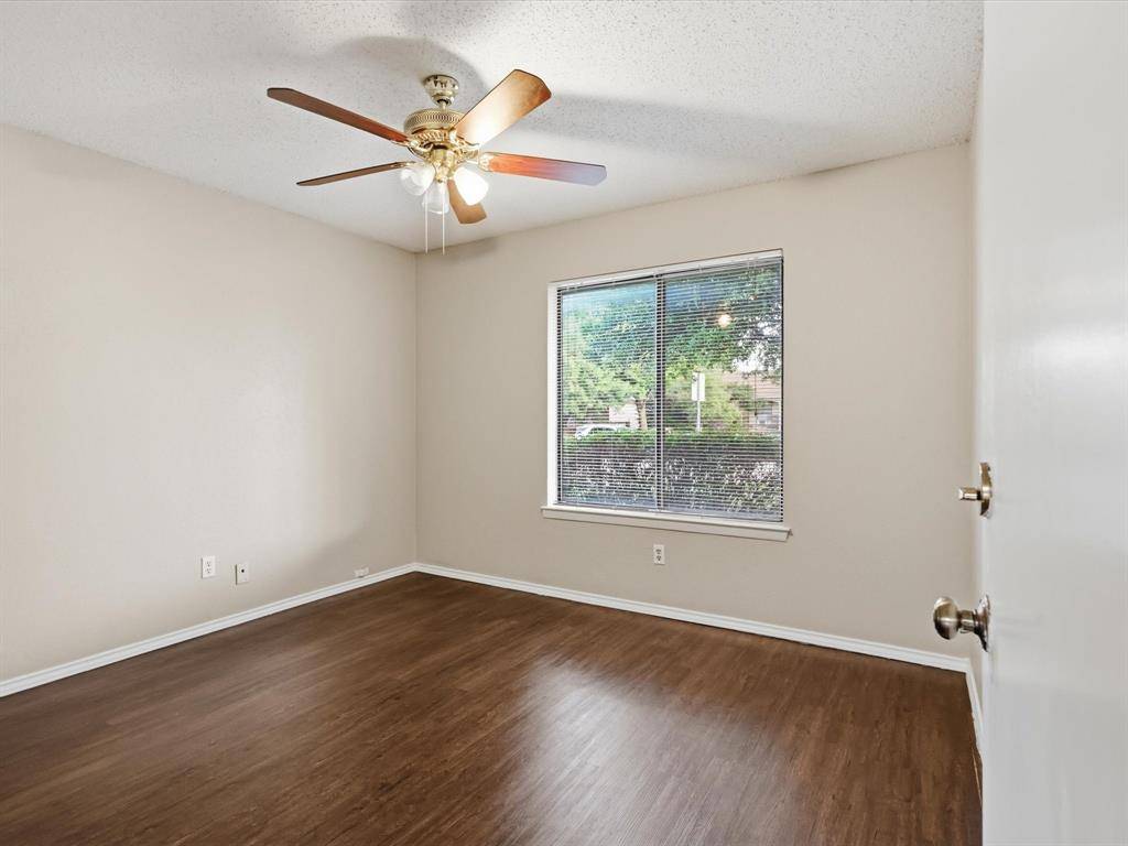 Well-maintained three-bedroom, two-bath charmer in the heart of Carrollton. This one's ready to go with all new interior paint, new baseboards and door trim throughout and a new 6 ft. privacy fence! This home features arched openings to transition between rooms and consistent laminate flooring throughout - no carpet! Your living room features a cozy brick fireplace; galley kitchen with ample counter and cabinet space; and the dining area has a sliding glass door to the backyard, providing lots of natural light. Beautiful shade trees surround the property and there's a storage shed in the backyard as well. Walking distance to Carrollton Farmer Branch High School and close to Addison Circle Park. Easy access to 35, 635 and 191 and minutes to Addison Airport.