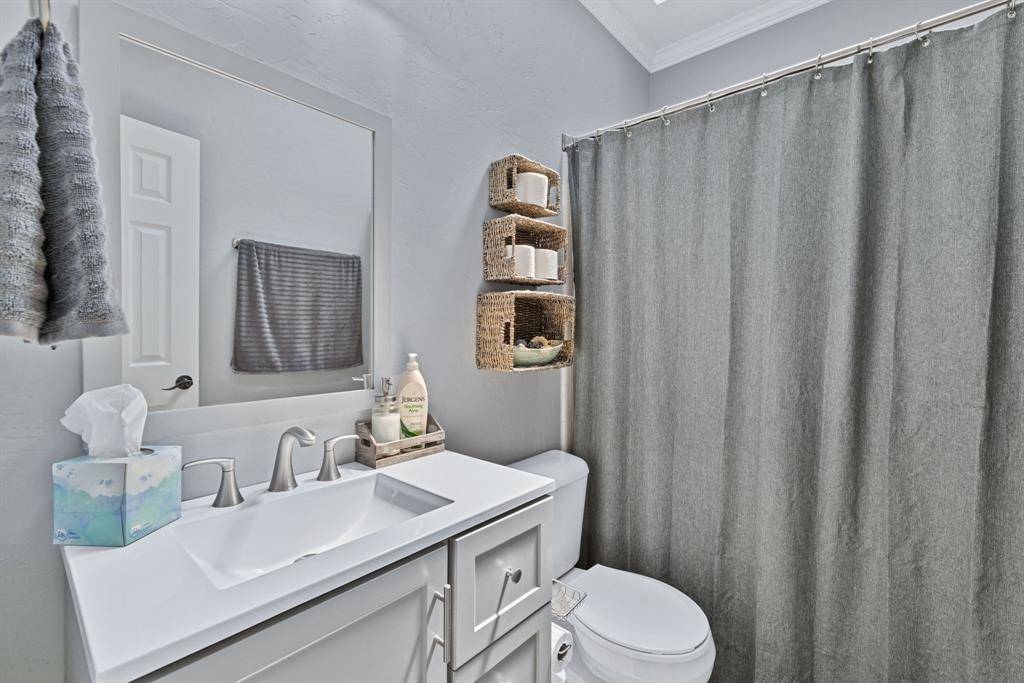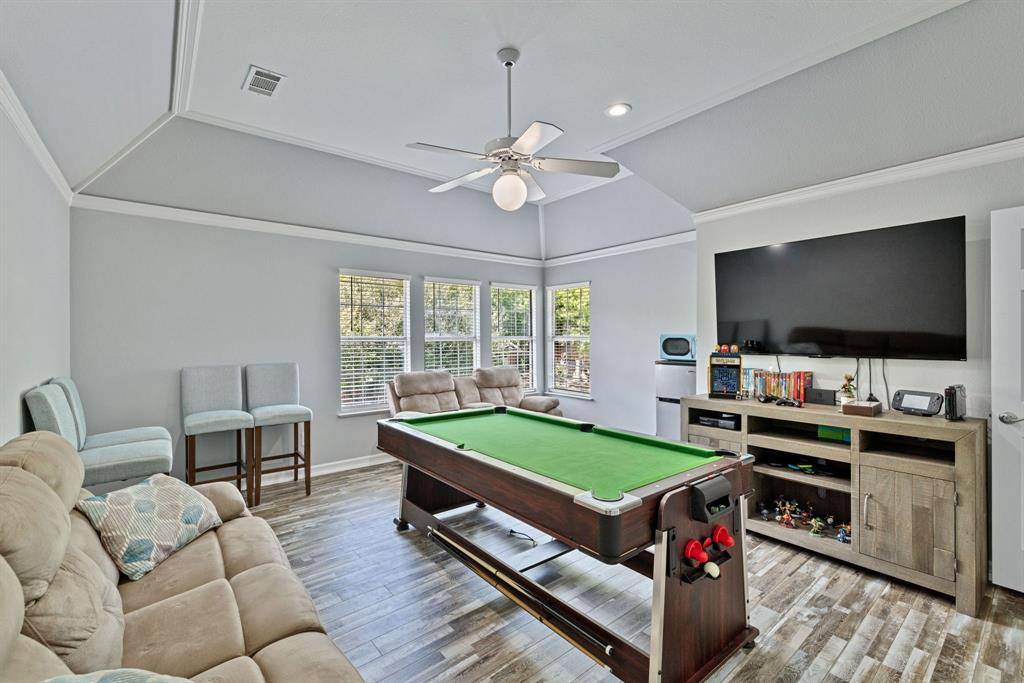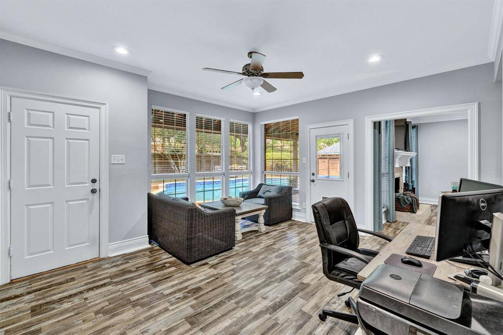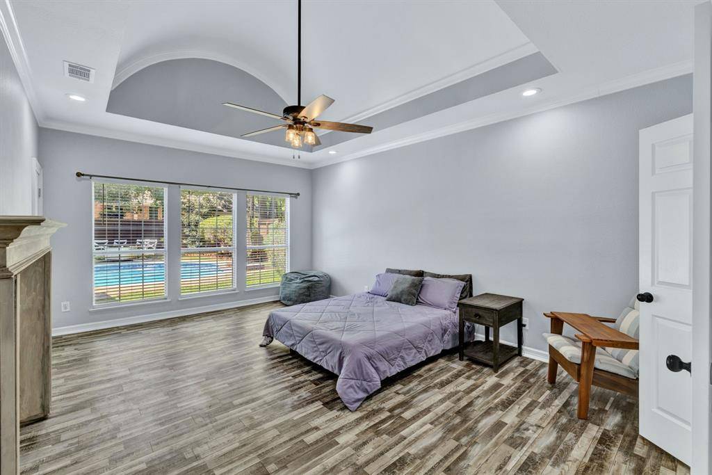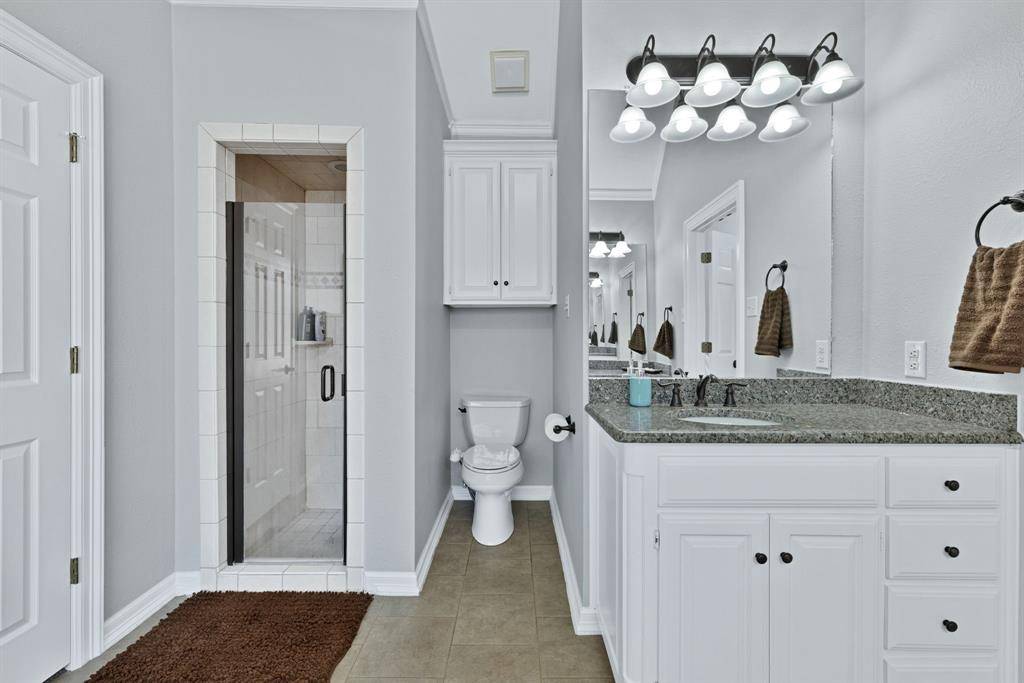 Welcome to this stunning Highland Oaks home with a POOL in the highly sought-after Keller ISD! Spacious and thoughtfully designed, the floor plan features a gorgeous master suite with soaring ceilings, a luxurious master bath, and direct access to the backyard oasis. Downstairs you'll find an additional private bedroom and full bath — ideal for a mother-in-law suite or guest retreat. Upstairs offers a large flexible room with a full-size closet and split bath that works perfectly as a media room, game room, or fifth bedroom, plus two additional bedrooms. The bright, pretty kitchen boasts granite countertops, a breakfast bar, and flows to two dining areas and two living areas — ideal for entertaining. Outside, mature trees and landscaping create a serene setting around a covered patio. All AC units were replaced within the last three years for added comfort and peace of mind.