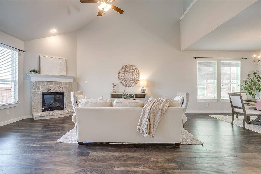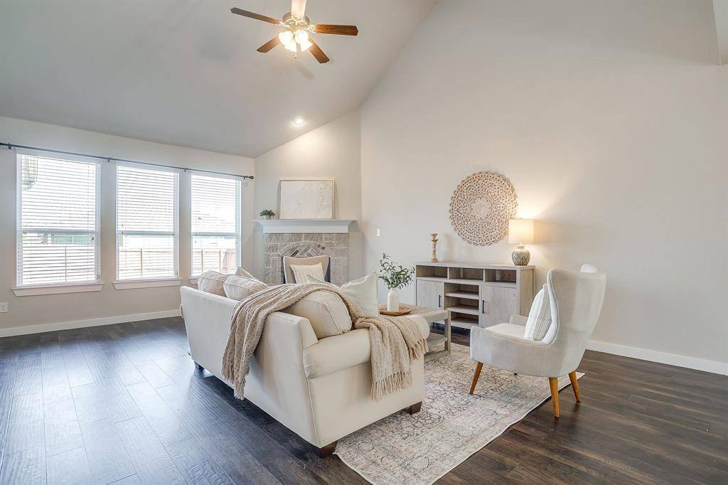 Welcome home! Built by Highland Homes in 2017 this home is move in ready and a 30 min drive to DFW airport. Bar C Ranch is convenient to several major thoroughfares in DFW and shopping and dining is just minutes away. The home has tons of windows bringing in natural light, fresh paint, wood flooring in the living area and updated lighting! Featuring 5 bedrooms, a 3 car tandem garage, 3 living spaces, a formal office, abundant storage, a large kitchen with a pantry and ALL in a great neighborhood with amenities! Great storage, formal office, a second bedroom and full bath on the first floor. The open concept entertainers kitchen features granite counters, gas cooktop, bar seating at the large island, walk in pantry and stainless appliances. The primary ensuite is light and bright and has a generous sized closet in the primary bathroom. Large open living room with tall ceilings and gas fireplace. Upstairs has 3 additional bedrooms and a bathroom, loft and a third living space! Low maintenance grassed and fenced back yard with sprinkler system and is maintained weekly. Low energy bills with fully paid off solar panels. Roof, insulation added and gutters in 2021, Water Heater 2021, HVAC serviced regularly with filters changed every 2 months and a whole home surge protector. Community park, pool and playground. You don't want to miss this house!