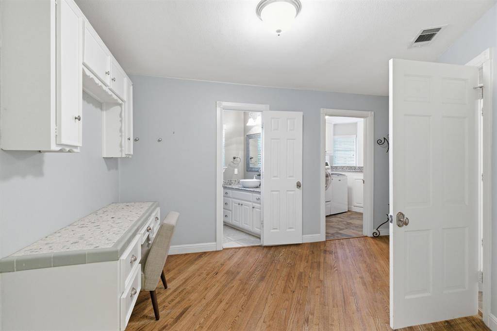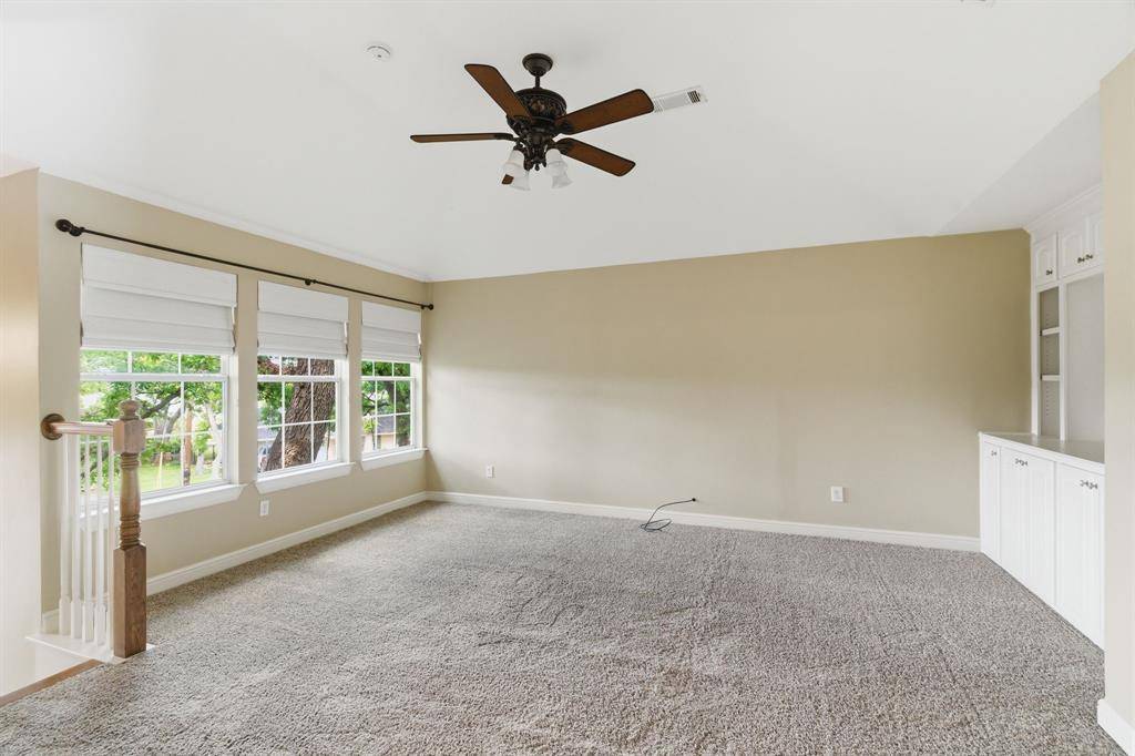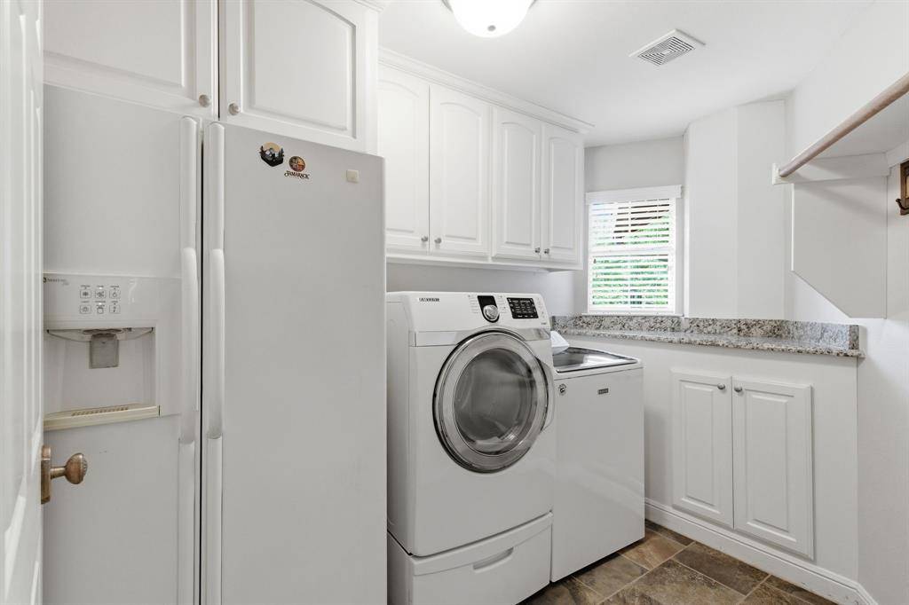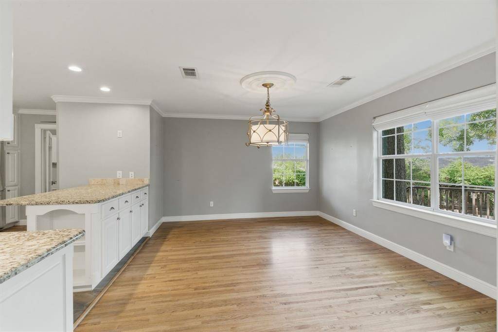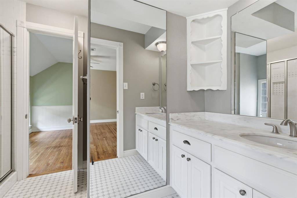 Inside, you'll find a flexible floor plan that offers the option for either an upstairs or downstairs primary suite. This home is full of character both inside and out—far from the typical cookie-cutter home. The family room showcases a stunning wood-burning rock fireplace that serves as a warm and inviting focal point. The kitchen has been tastefully updated and is ideal for both everyday living and entertaining, featuring a commercial-grade gas range, granite countertops, stainless steel appliances, a breakfast or buffet bar, and a generously sized dining area. Just off the garage is an incredibly versatile space that includes a full-size laundry room, a secluded half bath, and a flexible work area that could easily serve as a hobby space, mudroom, home office, or additional storage area. Upstairs offers potential for a private retreat with views of nearby Lake Grapevine—an ideal setting for a relaxing, spa-like primary suite or quiet escape. From the unique architectural details to the serene backyard setting, this home offers character, flexibility, tons of storage areas and an unbeatable location in one of the area's most desirable neighborhoods. BUYER TO CONFIRM SCHOOLS (DOVE ELEM MAY CHANGE), ROOM SIZES ARE APPROXIMATE.